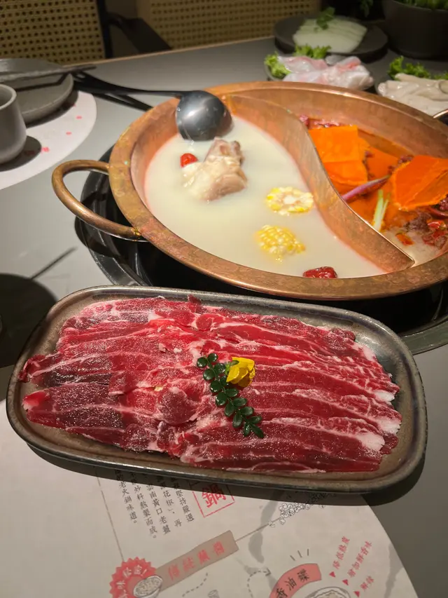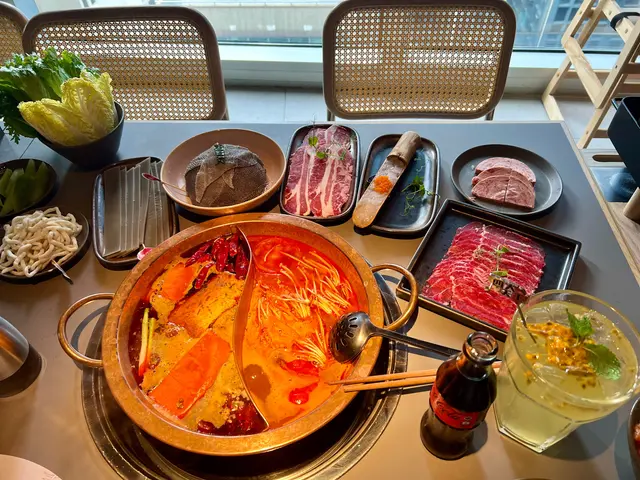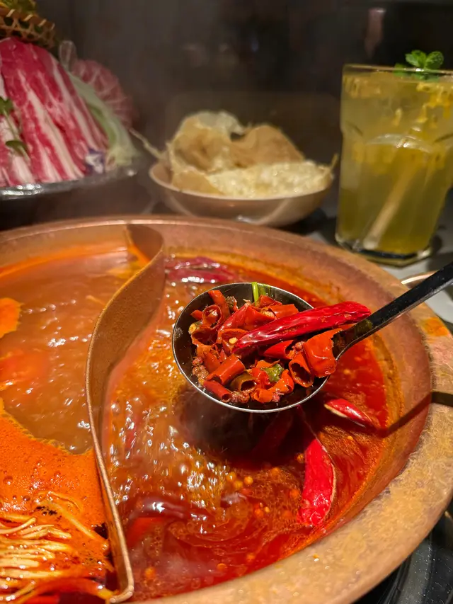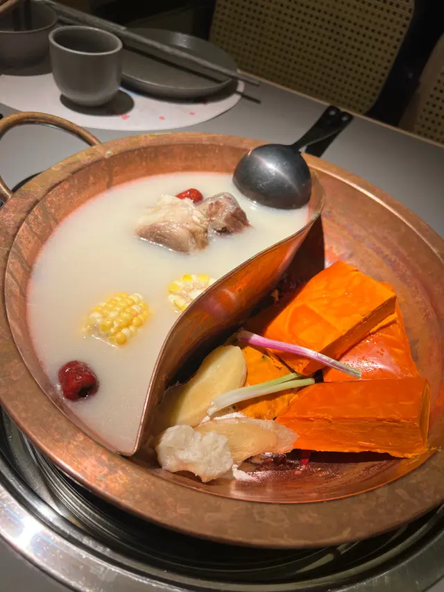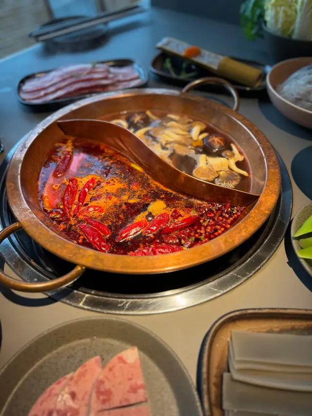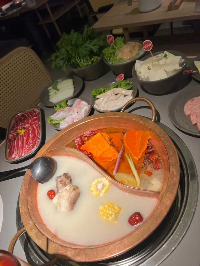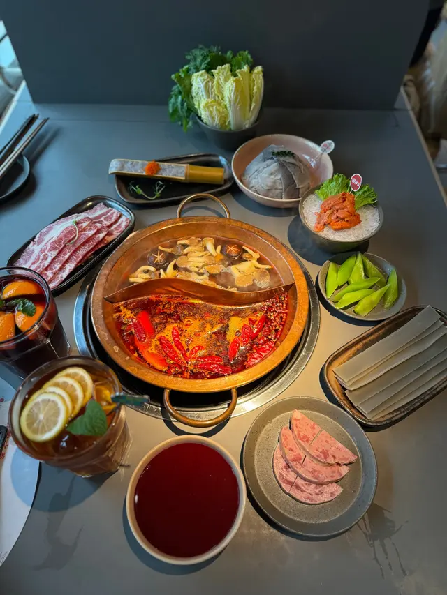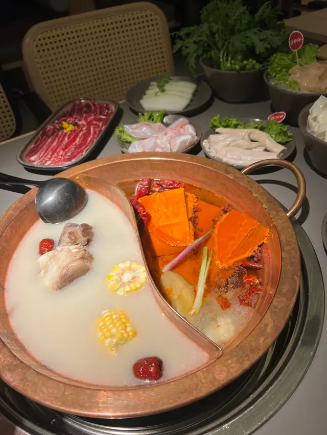 每個人都有自己嘅細鍋,可以自由選擇湯底。佢哋有五種湯底可供選擇,我就揀咗麻辣同皮蛋芫茜。麻辣湯底辣得過癮,香氣四溢,食落去熱辣辣,真係好開胃,而皮蛋芫茜湯底就清新啲。套餐超級豐富,唔單止有多款蔬菜,仲有兩隻蝦同一份肉同一個粉,食材都好新鮮,食得好安心。蝦肉咬落去彈牙,肉質亦都非常好,搭配唔同嘅湯底,特別係麻辣湯底,辣得正好!餐廳嘅環境亦都好好,冷氣夠足,喺咁熱嘅夏天都可以輕鬆享受美食。座位間隔適中,唔會覺得擠迫,讓人可以悠閒地享受用餐時光。服務員仲會主動幫你加湯,真係好貼心。…查看更多