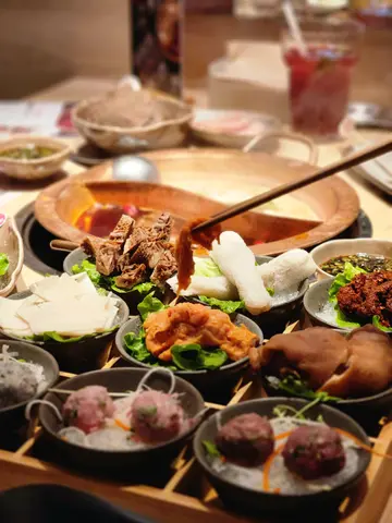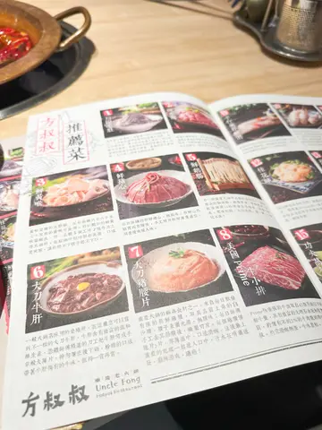 想食火锅,方叔叔系一个唔错既选择♨️🥢!..最近更推出8周年劲悭优惠 - 【1. 全线菜单劲减】 & 【2. 全线免加一服务费】,价钱更吸引但份量不变!自助火锅配料区~ 自由配搭。今次汤底拣左:麻辣+蕃茄浓锅 (小锅) 惹味麻辣铜底,配上酸甜开胃既蕃茄锅♨️吃麻辣之前,吃个糖水润润打打底!火锅配料唔少得:美国Prime特级牛小排(半份) 肉质嫩滑又充满肉汁,打边炉唔少得!另外亦点左美国牛板腱 (半份) 肉质相对有咬口。猪肉方面:极品黑豚腩肉(半份) 充满油香,而香卤猪大肠(半份) 配上麻辣汤底,吸汁又惹味。海鲜类:美国桶蚝(半份) 大大只珍宝Size, 一口咬落充满蚝汁!而鳗鱼(白鳝)(半份) 脆嫩可口。