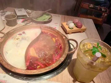 重庆麻辣锅入边有好多辣椒,辣得非常过瘾~而皮蛋锅入边都有好多皮蛋,超好味!每个套餐都会包一份火锅配料,我就拣咗嫩牛肉~另外仲有虾,午餐肉,丸,蔬菜,同埋类似薯粉既苕粉。全部食材都十分新鲜,虽然望落去唔系好多,但系食到超饱!而且套餐仲会包一罐汽水,以$98嚟讲,真系十分抵食,绝对会返嚟再食