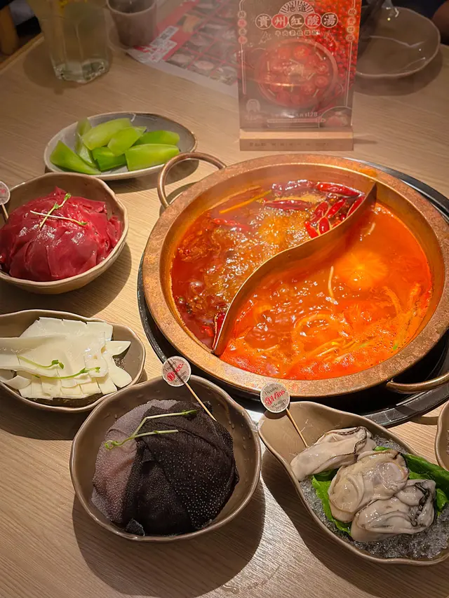 Lunch凍凍地食個火鍋暖暖身啊! 我就好鐘意食辣火鍋所以呢度好啱我!原來佢地有午市火鍋🥘好抵食啊!一人套餐 好豐富~ 😍2人套餐仲抵食啊!(仲冇加一😱)最近 好流行嘅貴州酸湯鍋😋 我係深圳都食過啊!宜家香港都有喇~酸酸辣辣好開胃啊!我點了鴛鴦鍋~ 老外一邊點做 花膠雞🐥 {湯底香濃 而且好多花膠 飲完馬上暖曬!}🫕我次次都點嘅火鍋清單 晨洲生蠔🦪 {當季 好肥美 超鮮味}// 鴨血{唔係唔點呀嘛} // 🥓肉肉 //🥩午餐肉{邪惡之選} // 蝦滑🦐{口口是蝦} // 鴨腸{爽脆} 毛肚{必點} // 🐚珊瑚蚌{鮮美爽口} //腦花{軟軟糯糯} //🍜寬粉{吸滿湯汁} // 紅糖糍粑 加上超大超全配料 調料Bar🥢配搭出自己秘製醬汁~ 真係 滿足了!查看更多