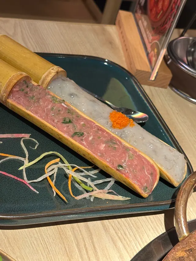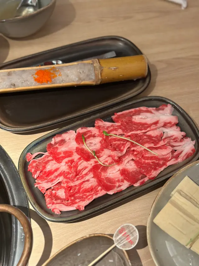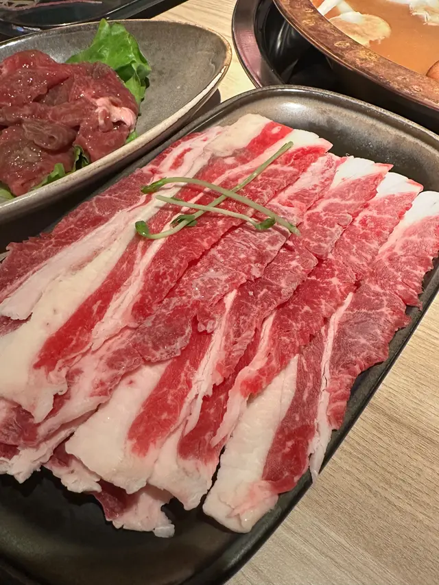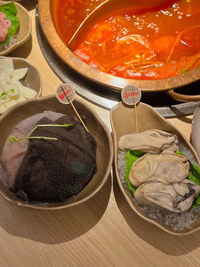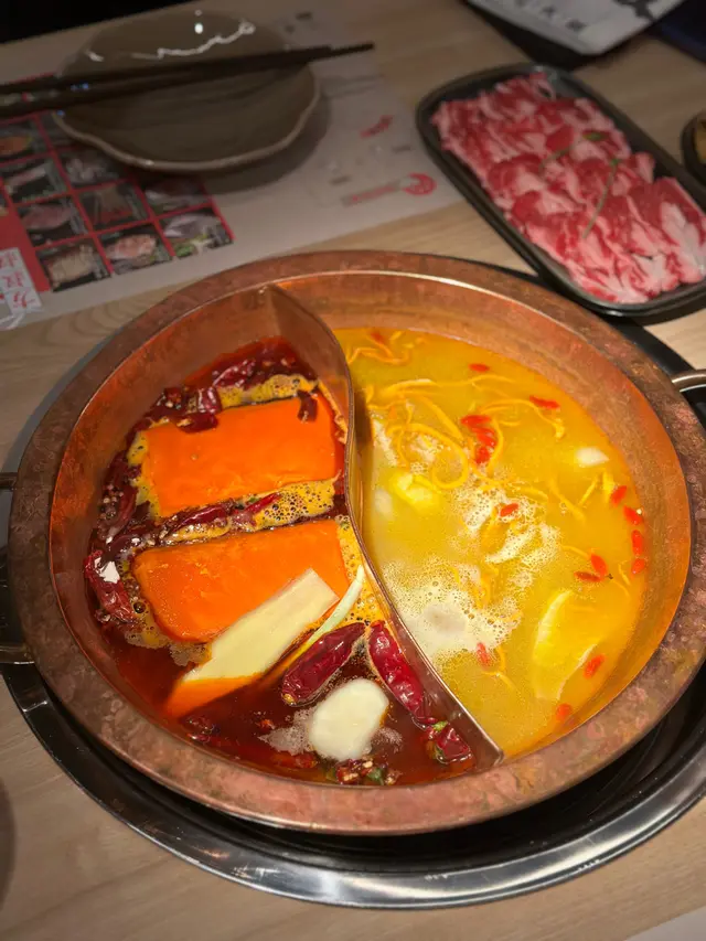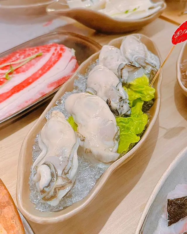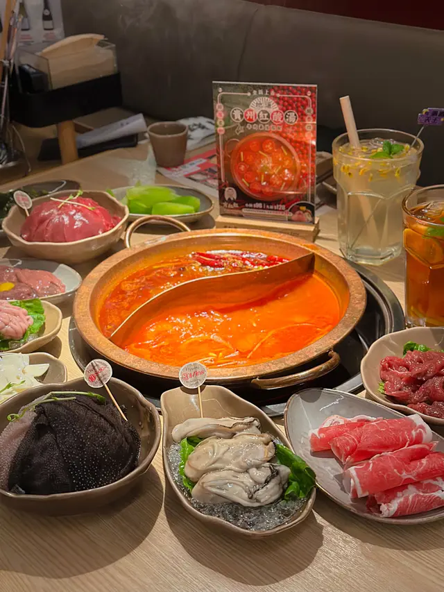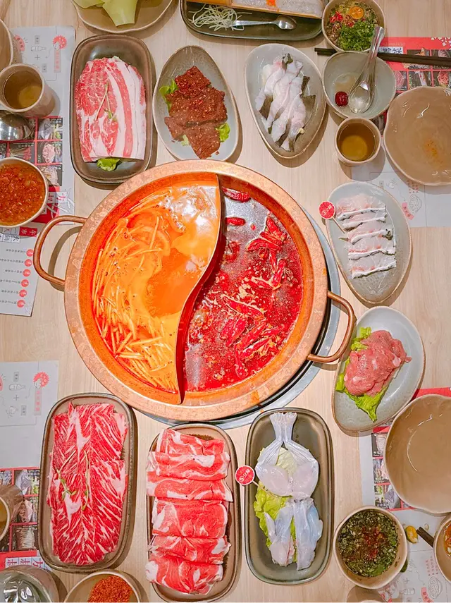火鍋套餐性價比高,食材新鮮,環境舒適,仲要無加一!可以半份食物**牛胸腹**:美國Prime特級牛胸腹,肉質好嫩,味道非常香,煮一煮就啱啱好,完全唔油膩。**手打魚籽蝦滑**:滑嘅程度無得彈,魚子味十足,食落去好有口感,真係唔錯。**珊瑚蚌**:新鮮又彈牙,每一口都好滿足,搭配火鍋湯底更加好食。**稻田毛肚**:煮到啱啱好,口感脆口,吸收咗火鍋湯嘅味道,真係好味。**鮮鴨**:肉質鮮嫩,唔會有腥味,搭配火鍋真係一流!**長城小白豬午餐肉**:咸香適中,咬落去有肉汁,食落去超滿足。**筍條**同**田園菜藍**都好清新,平衡咗火鍋嘅油膩感,唔錯。**紅糖爆漿杷**:甜度啱啱好,外脆內軟,爆漿好驚喜,值得一試!**武隆苔粉**:粉質滑,吸收湯底好好,食落去好舒服。查看更多