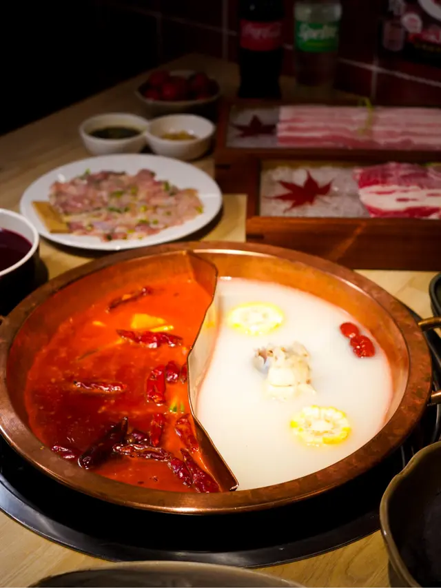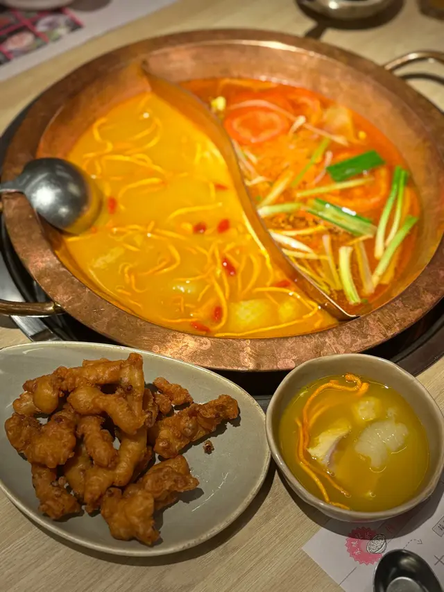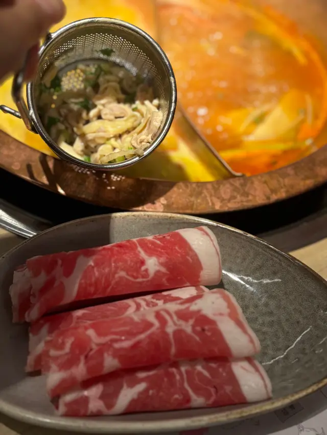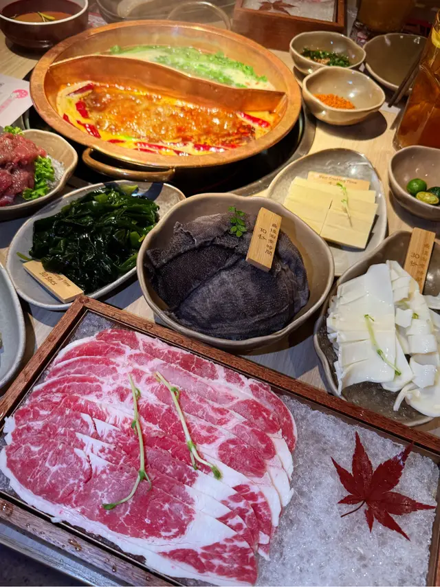 火鍋對我這種貪吃的人來說,是冬天的安慰,也是夏天的罪惡😈 最怕的是吃完渾身油煙、嘴裡全是香精味,連第二天都還打著嗝🙈 這次在銅鑼灣試了一間重新裝修、搬上了一樓的新店,終於找到一個可以放心大口吃又不怕「臭」的地方👍 新環境比以前好了不少🌟 搬上樓後地方寬敞些,光線柔和,通風做得很好❤️ 可以慢慢吃,聊聊天,也不怕吃到滿臉通紅🤗 這家店主打鍋底不放香精,這一點吃下去就能感受到🤭 湯底的香氣自然,麻辣鍋的辣不是死辣,而是花椒在舌尖慢慢散開的那種酥麻感🤩 蕃茄鍋的味道酸甜分明,用的是真材實料,不是粉沖出來的假味道☺️ 吃完後,舌頭舒服、喉嚨沒有負擔,衣服上更沒有那股可怕的火鍋味,這點實在加分✅ 這次🐧🐧 試的是全日二人套餐📍 肉類最讓我印象深刻的是美國Prime特級牛胸腹,油脂分佈均勻,輕輕一涮就香滑😚 黑豚腩肉肥瘦剛好,入口帶一絲甜香👍 嫩嫩嫩牛肉的命名沒誇張,那份滑嫩幾乎讓人捨不得咬🤩 紐西蘭羊肉卷沒有腥味,反倒有淡淡奶香😘 手打的香菜牛肉滑則讓我意外地喜歡,那股香菜味在肉香之間冒出來,清新又特別😎 魚籽蝦滑彈牙又有微微的鮮味顆粒感🤤 重慶炸酥肉外皮香脆不油膩,涮麻辣鍋尤其對味😆 鮮黃喉脆爽,芝士腸則是邪惡又快樂的一口😈蔬菜選了包漿豆腐和霞浦海帶苗✅ 包漿豆腐吸湯超級厲害,一口咬下去滿滿是湯底的香🌟 海帶苗則清爽,剛好中和了肉的油膩🙂↕️ 主食用的是稻庭烏冬,滑溜又有嚼勁,不易糊爛😎 最後收尾的紅糖冰粉冰冰涼涼,甜中帶著微微焦香,一口就讓整頓火鍋的熱氣消了大半☺️ 飲品是汽水,簡單直接,搭配麻辣鍋再合適不過👍 …查看更多