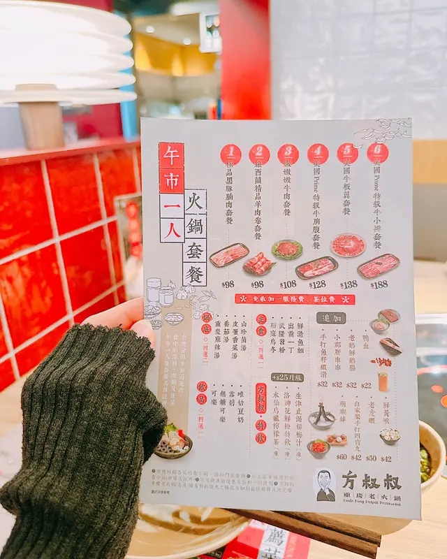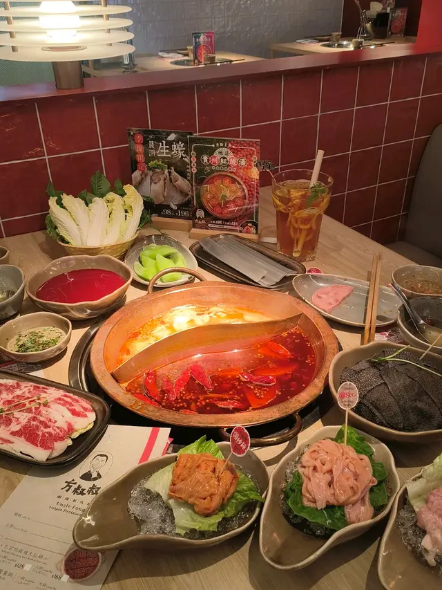方叔叔重慶火鍋絕對係適合兩至三個人地方!在OpenRice上,他們的$526二人套餐性價比高。套餐內有鴛鴦湯底、兩款肉類,還有重慶火鍋必點配菜黃喉和鵝腸等,包含着重慶火鍋的靈魂,最後還有冰粉作為甜品。餐廳另外一個特色是所有的配菜都可以選擇半份,這樣不僅滿足兩至三個人聚餐,還能讓你盡情嘗試更多不同的配菜,真是火鍋的最佳享受!相比其他港式火鍋,份量太大,選擇更加少。新鮮鴨血(另外點)🌟🌟真正鴨血比台式鴨血好食百倍,放入麻辣湯底裏便吸晒湯嘅精華,口感更加嫩滑蝦滑必點🌟蝦肉嘅比例非常之高 爽口鮮甜黃喉 鵝腸雖然這些都是雪藏品,但質量依然高,脆爽黃喉和鵝腸,麻辣火鍋中不可或缺經典配料貢菜🌟🌟乾貢菜少見,爽口又吸湯汁寬粉🌟煙韌彈牙的口感,能夠充分吸收湯汁的精華查看更多