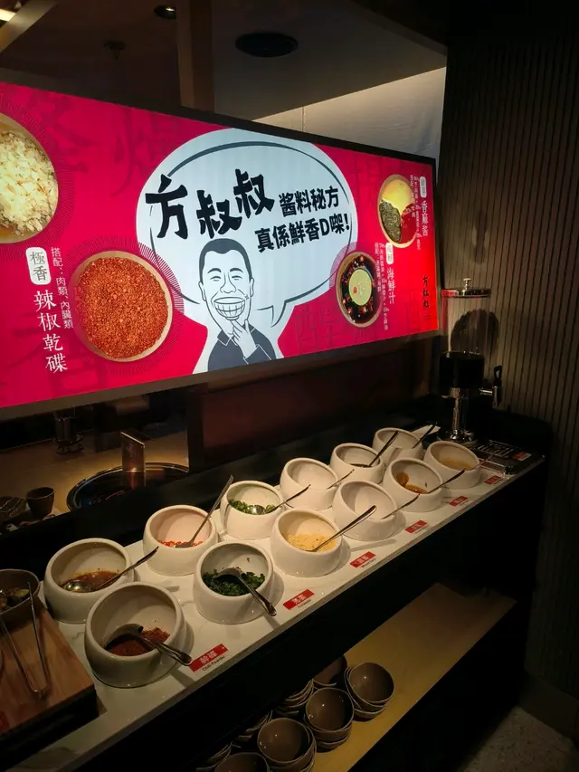 方叔叔喺銅鑼灣開咗新分店地點方便環境又坐得舒服可以慢慢嘆返個正宗麻辣火鍋😋冇嚟一排發現原來新餐牌竟然減咗價仲要全日免收加一好抵食🙀🌟麻辣x養生花膠鍋(小 $158)試咗呢兩個湯底覺得必點!麻辣鍋辣得過癮,香氣十足花膠鍋非常足料,有好多雞件同花膠而且個湯好鮮甜濃郁😻打邊爐之前一定要飲番幾碗🌟晨州生蠔(半份 $98)季節限定嘅新品蠔肉好飽滿厚肉,烚完之後都冇縮水入口嫩滑鮮美唔會有苦澀味🌟手打魚籽蝦滑(半份 $39)🌟大刀萵筍芯(半份 $25)🌟霞蒲海帶苗(半份 $19)🌟手切鮮牛肉(半份 $149)🌟珊瑚蚌(半份 $65)🌟方叔叔現炸豆皮(半份 $29)🌟無骨鴨掌(半份 $29)🌟特色迷你燕餃(半份 $29)好欣賞呢度嘅菜式都可以叫半份兩個人打邊爐可以試到好多菜式😆我哋都叫咗唔少舖頭嘅推薦菜出邊嘅調味料可以自由配搭建議可以試吓辣椒乾碟點牛肉又香又惹味,同肉類好夾🌟洛神花鮮橙特飲($38)🌟水仙烏龍檸檬茶($38)飲品超大杯,揀咗兩款都係比較清爽酸酸地啱晒食完辣嘢可以中和下留意到仲有新推出嘅貴州酸湯鍋而午市火鍋仲有一人套餐百零蚊就可以自己獨食下次要再嚟試吓先🤪查看更多