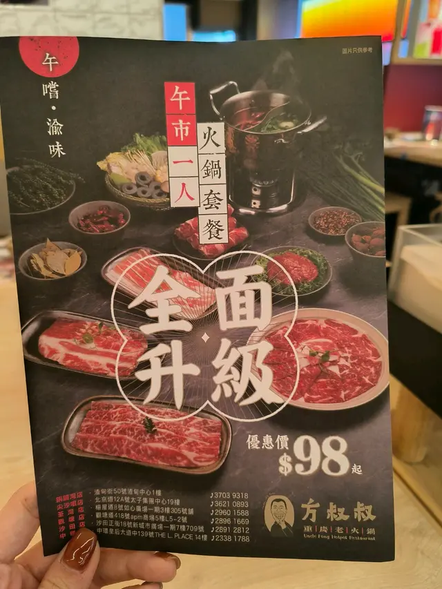 話說小弟早前同朋友去銅鑼灣行街 經過渣甸中心見到有間方叔叔重慶老火鍋 就抱住好奇嘅心態上門拜訪方叔叔😆😆去到舖頭發現佢哋午市有套餐 對於趕時間嘅朋友講價錢又實惠 又滿足飽肚 不過我當日時間充裕就慢慢睇單點嘢食 而且有好多疑問都有問當值員工 雖然見唔到方叔叔本人 不過樓面有兩位女士服務得非常有禮 又有耐性 主動同我哋推介一啲菜式 另外又幫我哋落鮮鴨血同蝦滑 雖然我哋嗰日叫嘅嘢食唔多 不過就享受到帝王式服務 埋單嗰時 佢哋亦都有推介會員優惠 令到我覺得原來係打邊爐性價比都可以咁高 我相信日後都會再黎本店用餐👍🏻👍🏻👍🏻 查看更多