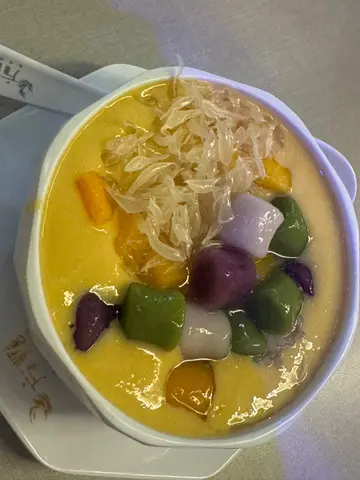 甜品虽然整得靓,但食落唔系果回事。唔好以为食客食唔出偷工减料,建议店主学下每款甜品正常做法。杂果杨枝甘露$53:杨枝甘露只有芒果汁+西米+西柚+杂果,杂果多款又新鲜👍🏻,问题系杨枝甘露唔净只芒果汁😐💢,味道唔应该咁单调。椰皇奶冻$38:面头加左小丸子系好靓,但椰皇奶冻冇椰皇味,只算是奶冻。