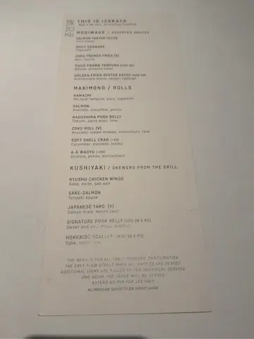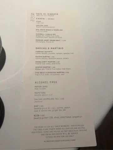Five years ago, when I was working in Wanchai this location was still in construction, and today it has become a chic hotel called The Hari. Today we come to its contemporary Japanese restaurant, to see what sort of different dining experience it has in store for us. By the way, the name means ‘clan’ in Japanese.Stepping out the elevator the staff shows us to our table, a comfortable khaki velvet booth facing the terrace, where we can also sit outside but probably not in such cold weather. The design is hip, with an asymmetrical origami ceiling. The dim lightings and overall ambience remind me more of a Western diner though.We order the Discovering Zoku 6 Course Tasting Menu ($888 each) and also a serving of Nabeshima Honjozo 锅岛特别本醸造 ($228). The Otoshi, which are small bites, include a Tartlet with Crab meat, Inka Potato puree at the bottom, and Ikura on top. The other is an interesting Crispy Rice burger with Wagyu tartar in between, and a Quail Egg on top. Both delicious.Next comes the Pork Broth which contains Gobou Root as well as Leek. The hot soup helps to warm the stomach. I like it being not too salty, with the burdock providing some texture in the soup.Then it is Kaishi, or starters. We have chosen Shima Aji, with the Striped Jack cut to thin slices and then added with Umeboshi, the common pickled ume, as well as Pickled Plum, to provide the acidity to freshen the palate. There are also some crunchy sea moss at the bottom. The other starter is Wagyu Tataki. The A4 Miyazaki Wagyu is torched and then sliced thinly, with a bit of Sudachi juice added, together with Ponzu, to add flavours to the beef. Among the two starters I like the beef more.Next is the Sushi, and we have chosen Zoku Roll, with Asparagus and Avocado inside the rice roll, and  melting Cream Cheese on top, finishing with some caviar. The asparagus is tender and we don’t need to spit out any tough fibres.The other sushi roll is Crab Roll, with the soft-shelled crab deep-fried before mixing with some Tobiko, Avocado, and Cucumber to wrap into the roll. The crunchy texture of the crab is pleasant, and not greasy from the deep-frying.  Then comes to Otsumami, which means small plates. The first we choose is Tori Niku Gyoza, with the dumpling pan-fried nicely to golden-brown on both sides, having minced Chicken Thigh filling which is delicious and the Ringo Soy Sauce helping to add umami flavours.The other one is Kinu Tofu, which means silk bean curd, with a very soft texture, served on a delicious Yuzu Tentsuyu, the dipping sauce commonly used for tempura. There is also a Seaweed Rice Cracker on top, crispy and adding umami flavours to the tofu.Coming to the Mains, the Hamachi Kama is the grilled Yellowtail collar. The fish collar has been marinated with miso, good in taste, with the skin nicely charred. On the side are some Shishito, small Japanese peppers, with also Daikon Oroshi, or meshed radish to help balance the fish oil.The other one is Kohitsuji Yaki or Chargrilled Lamb Chop. Tender and juicy, the chef has added a bit of sesame and spring onion to add further fragrance, as well as a Black Garlic Sauce for additional flavours. There are also some grilled broccolini on the side too.For Desserts, we have Matcha Cake which is like a cheese cake mixed with matcha powder. Baked to a nice brown surface, on the side is White Chocolate Ice Cream. Appropriate in sweetness and gives a satisfying contentment.The other one is Mochi Cake, with a nice ‘q’ texture and on top drizzled with some Miso Caramel to provide salty sweet flavours. On the side is Coconut Feuille, with the coconut ice-cream mixed with a crunchy biscuit crust together.Also included in the menu is Coffee or Tea. The service is decent, with the staff friendly but not engaging enough. The bill on the night is $2,279 which is reasonable considering the amount of food we got and the quality is also good. A nice contemporary Japanese restaurant.…查看更多