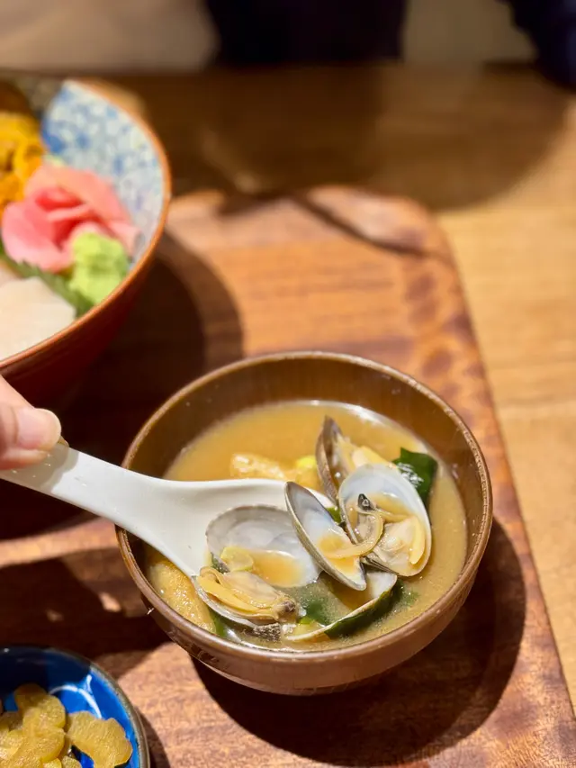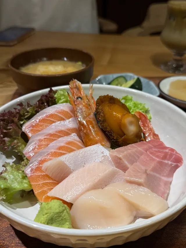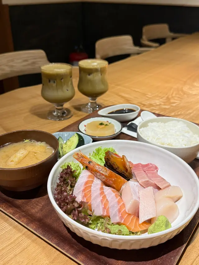 人生中總有一些遺憾和錯過的機會。是晚走進這間懷舊的文青校園cafe,彷彿坐上了時光機。隨著純音樂和風鈴聲響起,喚起了許多回憶,讓人得以釋懷人生的種種。餐廳環境非常寬敞,充滿濃厚的學園氛圍,擁有多個不同的場境,讓人可以慢慢沉浸在其中。餐廳提供的定食和丼飯皆高質美味,值得推薦俾朋友。蜆肉麵豉湯 (跟餐)麵豉湯味道鮮美,蜆肉不少,鮮味濃郁,熱湯暖心,感受一下環境,好像回到昔日的感覺。雲丹三文親子丼 $218魚生丼是期間限定,賣相吸引。厚切的三文魚腩鮮甜肥美,紋理清晰,油脂透亮,柔滑細嫩,啖啖魚香。新鮮的三文魚籽粒粒晶瑩剔透,爆粒口感,加上咸鮮的醋飯,味道極好。還有鮮甜的海膽,濃郁的creamy口感,整碗丼飯的幸福感滿滿!天婦羅虎蝦野菜定食 $178天婦羅一大堆,炸粉適中。虎蝦大隻且彈牙,帶子新鮮甜美,南瓜的甜,野菜餅薄脆可口,整體唔錯。特濃焙茶プリン布甸金時雪氷 $68刨冰口感綿密細緻,入口即化,帶有淡淡的焙茶香味。配上焙茶布甸,濃度加倍,味道香甜,再加上香甜的十勝紅豆和奶蓋,完美的甜點為這頓餐畫上圓滿的句號。凍日式玉露茶 (跟餐)玉露茶清香,不帶苦澀,味道甘甜。不過,事後失眠才發現,原來玉露茶的咖啡因含量有40%,與烏龍茶相若,夜間飲用較易影響睡眠。相比之下,焙茶的咖啡因含量僅有10%,對睡眠影響不大,最終才發現玉露茶才是元兇。…查看更多