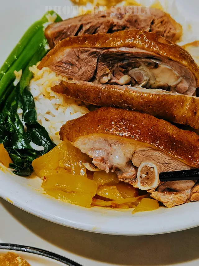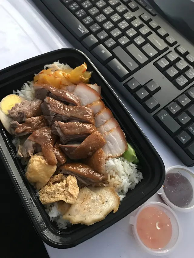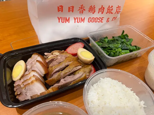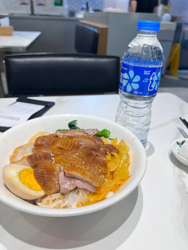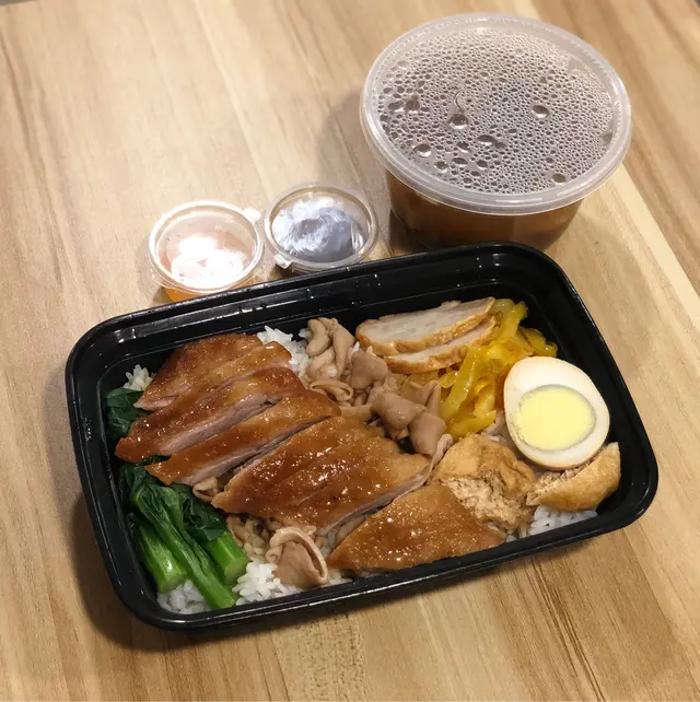 This shop hangs very big goose by their kitchen windows and is famous for their 獅頭鵝! Here they cook their meats in marinade, instead of roasting them. I ordered a few lunchboxes for myself and my colleagues. The marinade is made with their house recipe and it tasted just right. My pick was the marinaded pork belly+ bone-in goose meat combo. The box was wholesome: meats of your choice; pickles; daily vegetables; fish cake slices; marinated tofu puffs; and marinated boiled egg. Pork belly was crisp and refreshing, not fatty at all, I can feel the collagen from it, a decent surprise!!Goose meats were fatty and juicy, I guess this type of goose is suitable to be marinated instead of being roasted? The two sauces on the side paired very well with the meats, the darker one is the soy sauce-based marinade; and the lighter one is the spicy vinegar. The rice comes with a free bottle of water, you can add extra to opt for tea/ drinks too. 查看更多