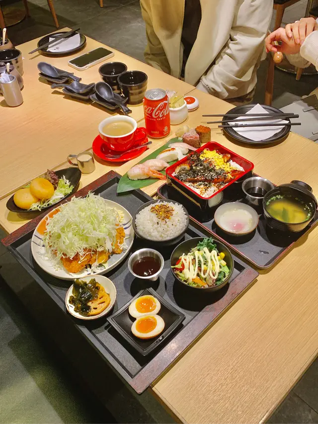 一直都覺得銅鑼灣依間「日本野」高CP值,3個人去食晚飯,人均$166就已經每人有一個定食連小食或飲品,定食份量大,仲要幾好味,真係好滿意。*此餐廳收取加一服務費。大阪風吉列豬扒定食(單點$138),表面鋪滿椰菜絲,吉列豬扒份量多,炸漿部份薄脆,豬扒肉質軟熟,食落好Juicy,配以日式特製濃口豬排醬、美乃滋食用,味道甜鹹;日本米,表面鋪有飯素,食落好香口;溏心蛋,流心效果突出;是日沙律,表面鋪有美乃滋,包括有羽衣甘藍、紅毛生菜、粟米、紅蘿蔔、車厘茄;配菜,包括有醬油漬海帶、醬油漬蓮藕。蒲燒鰻魚定食(單點$158),表面鋪有紫菜、雞蛋絲、芝麻,原條鰻魚肉質厚嫩,食落充滿蒲燒醬汁味道,日本米口感軟硬適中,配以溫泉蛋、蒲燒醬汁食用,蛋香味濃;是日餐湯,味噌湯,內有海帶、香蔥,味道正宗。精選壽司盛盒(單點$128),鱆紅魚壽司,食落好新鮮;香蔥吞拿魚蓉壽司,味道清爽;甜蝦壽司,味道鮮甜;左口魚壽司,表面鋪有醬油,味道鹹鮮;三文魚籽壽司,食落有鮮味;油甘魚壽司,肉質肥美,食落入口即化。芝士年糕2件(跟餐$28),口感外香脆內煙韌,芝士味道鹹香。可樂(跟餐$0)。熱即磨咖啡(跟餐$0),味道濃香。…查看更多