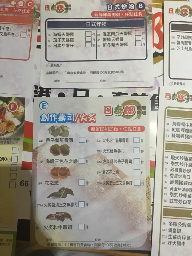 食得放題,預左質素唔會太好。一入黎就覺得衛生麻麻。地下好污糟,座位疑立立,又冇抽煙機係每個爐上面,好大油煙。漏單情況好嚴重,可能太爆既關係。廁所似公廁,唔太乾淨,所以怕污糟既人最好有心理準備。d野食味道賣相麻麻,肉好多肥膏,冇肉食,所以都冇影相。唯一和牛同粟米比較好食,飲品都算多選擇,又有蒸爐,怕韓燒熱氣可以蒸。雖然有日式放題、韓燒、蒸爐,咁多花臣。但食物選擇唔多,天婦羅蝦好細隻,又唔覺有泰式野食。有d落單紙只可以圈最多4個,唔俾你填多,但又唔見會黎足。d比較貴既食物,例如:花之戀、海膽壽司、鰻魚壽司,落3次單先黎1次,仲要好遲先黎。總括而言,衛生好差,食物質素麻麻。座位太爆,d員工都做到好忙好亂。有優惠都要成二百位,食得果2個鐘,我唔會食第二次查看更多