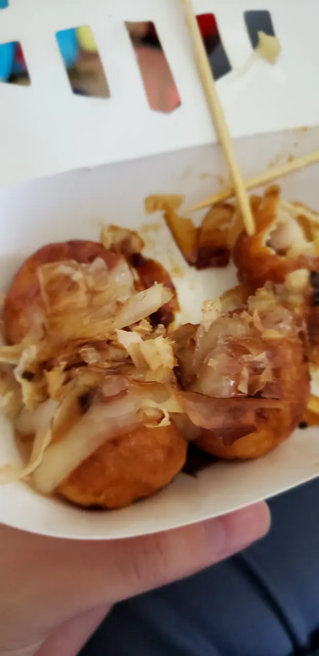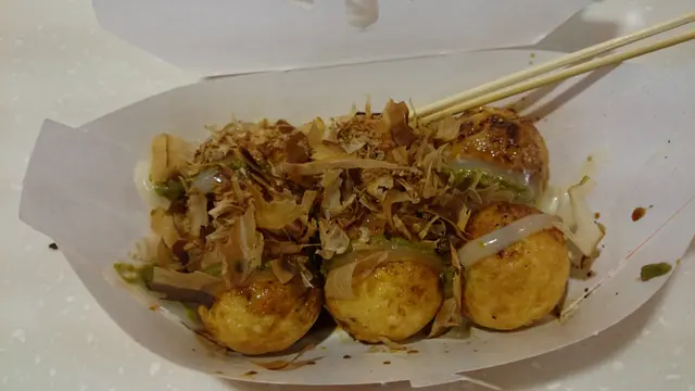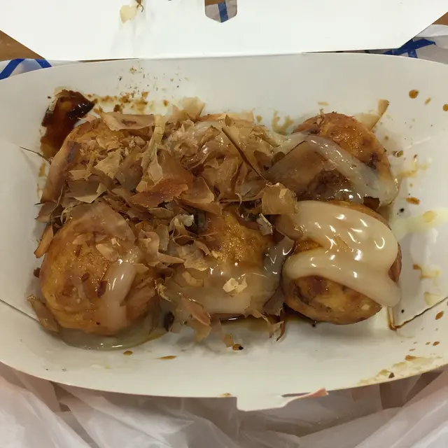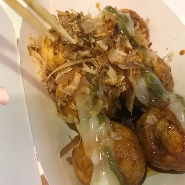 以前細個其中一様鍾意嘅街頭小食,就係章魚小丸子喇!以前十鬆d蚊有6粒食到飽飽可以當一餐架!日船也算是章魚燒的始早吧!現在是$20/6粒,只看價格,好像還可以,但是丸子的尺寸,怎樣比從前細了三份一吖?!是我記錯?!或是我變得口胃大了?!丸子配上wasabi ,甜味沙拉醬,燒汁和木魚花,味道如以前的好,這些醬料味道跟丸子實在太夾了!丸子裡的章魚粒也變小了,另外,丸子不是即叫即造,是造好了放到盒子等賣的,雖然有微溫,但口感也確實扣了點點分數~這個份量可以是一餐,但不會是飽飽的那樣了~查看更多