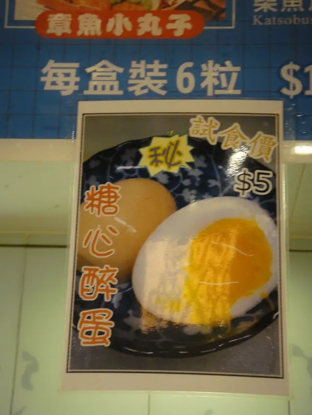 This joint is actually famous for Takoyaki balls but when I saw the soft boiled eggs in wine I decided to try it.They were only $5 each because it was on promotion.★☆★☆★☆★☆★☆★☆★☆★☆★☆★☆★☆★Soft boiled egg in wine:I was given two bamboo skewers to eat it which was pretty challenging because egg is the most delicate thing you can eat and it was a soft boiled one too.Managed to eat it and the yolk was indeed runny!The egg was a bit cold because it was chilled and it was a bit too salty.★☆★☆★☆★☆★☆★☆★☆★☆★☆★☆★☆★查看更多