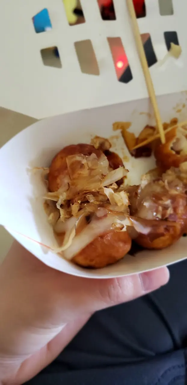 一直都覺得日船嘅小丸子好好味 但對我黎講有小小貴 所以有時都唔係好捨得買🤭 但今日同事萬歲 所以就有口福啦😆😋小丸子嘅其中一個重點係個醬料🥢甜滋滋嘅沙律醬同埋微辣嘅芥末醬真係配合得天衣無縫😝加埋面頭嘅木魚 真係好好味🤤!! 不過略嫌麵粉比較多 但入面嘅配料都好足 爽口嘅椰菜配上有咬口嘅章魚 好有口感😆 但可惜嘅係今次唔係即場食 所以凍左 無咁好味🤢但係每次經過Food Point見到日船小丸子新鮮滾熱辣嘅樣 仲要香噴噴 都好想食🤩查看更多
