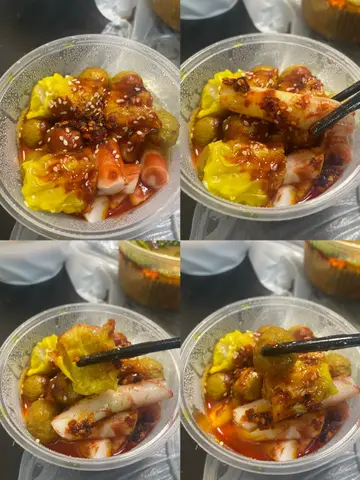 行街经过呢间街头小食店,被佢个灯箱 menu 嘅「招牌咖喱鱼蛋」吸引住😉🧤 等咗一阵,个小食盘就捧到面前:肠粉、鱼蛋、烧麦… 铺满红润酱汁仲洒埋白芝麻,色彩缤纷到好似开 party,卖相超吸引!🌈鱼蛋,果然弹牙爽脆,咖喱味够晒浓郁惹味~🍢 肠粉滑捋捋嘅,挂住甜甜地嘅酱汁,软糯中带住少少咸香,口感层次好丰富!虽然系街边小店,性价比超高~💫 钟意街头美食嘅朋友,绝对值得试试呢份贴地滋味~…查看更多