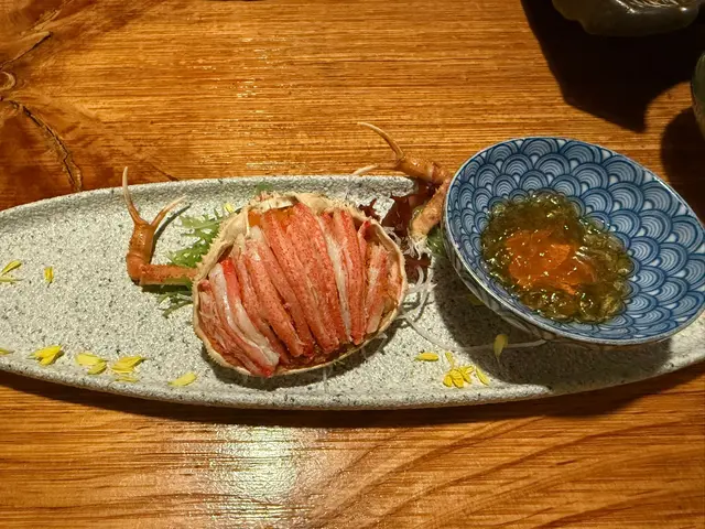 誤打誤撞搵到呢度,前前後後已帶過幾班朋友嚟食飯,個個都對佢哋嘅食物及服務讚口不絕,星期一至星期四嚟嘅話,要有房間就要俾deposit,我帶4-5個朋友沒串嚟,minimum charge $1,500。星期五嘅minimum charge for 房間係$2,000。嚟度一定要叫啲佐酒小食,有芝士粒、魚肝,燒酒類別有好多選擇。仲有必食佢個蟹,折哂肉,配上酸醋,$188一隻,好抵食,多人要食嘅話就要早啲講,否則冇貨。雜錦刺身魚肝折肉嘅蟹,有個名堂但唔記得咗,總之好食納豆,佢整得ok芝士粒串燒魚,好味嘅飯團燒蠔豆腐雪糕…查看更多