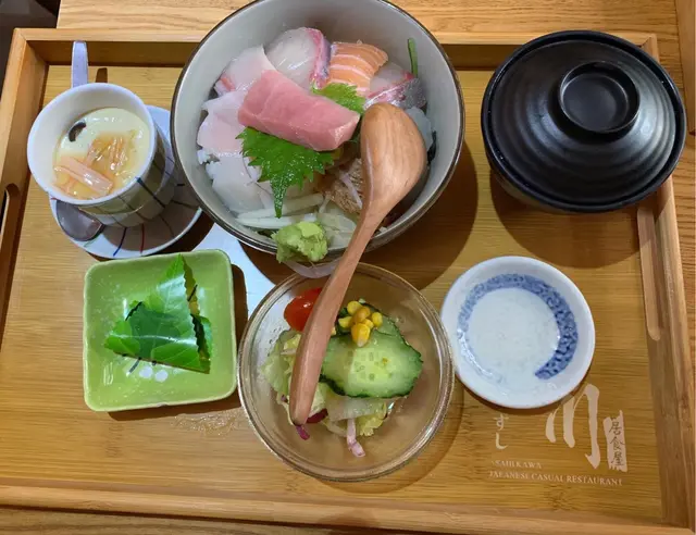 今天來到大埔,選了這間日式餐廳食午餐。這裡的餐廳裝修很有心思,掛畫很有日本特色,很有氣氛。我同朋友點左一個迷你拖羅魚生丼配細牛肉烏冬,另外點左個特上拖羅季節魚生丼。拖羅季節魚生丼有好多魚生,三文魚好厚切,好肥美,拖羅有少少入口即溶既感覺,仲有好香既魚油味,帶子好鮮甜,赤蝦好爽口鮮甜,仲有我最鍾意嘅油甘魚,跟餐仲配埋茶碗蒸、沙律、味噌湯同甜品。麵豉湯,都ok,唔會有好咸既味精,茶碗蒸,蛋好嫩滑,入面有唔少配料,例如香菇、蝦肉、元貝仔等迷你拖羅魚生丼一d都唔迷你,拖羅入口既溶個烏冬既牛肉幾嫩,份量都唔,烏冬彈牙,湯底都算幾香總括而言,呢間日式餐廳係性價比好高,而且價錢非常經濟查看更多