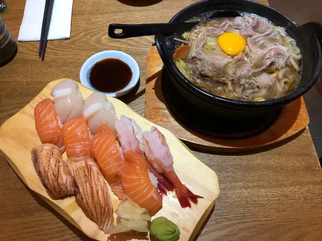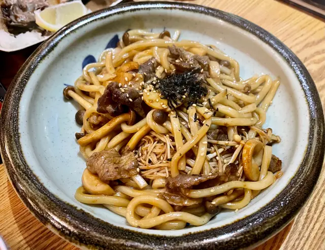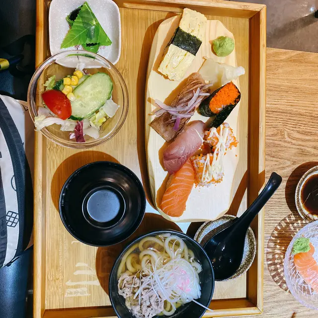 周六與老公隨意搵食,見到「居酒屋」便入去試吓!一入去,午餐時段好多人,通常人多都反映歺廳Ok....即管一試!午餐餐牌我多選擇,我點了寿司加牛肉細烏冬,我老公就點左個蒜片牛肉,另外我哋在家個蒸蛋及三文魚刺身兩件。我個壽司定食加延牛肉湯烏冬,賣相OK,份量也很足,定食午餐有包麵豉湯,沙律,甜品和飲品。壽司味道OK,飯只係普通嘅飯,沒有壽司醋味,等個蒸蛋熱辣辣,唔多味精,冬天食幾好!蒜片牛肉定食,味道一般,牛肉較硬,三文魚刺身到都可以。但整體以這個大眾化嘅價錢,食得飽,味道亦都唔係太差,我覺得都滿意。查看更多