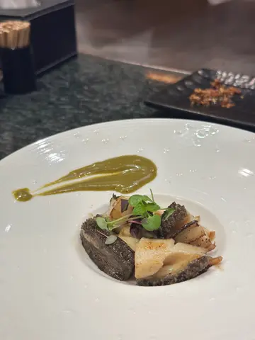 这间餐厅精心设计的套餐, 可品尝新鲜鱼生, 更可感受铁板的美食, 体验一场跨越温度的味觉之旅。套餐以刺身作为优雅的开场。左口鱼薄切配马粪海胆是视觉与味觉的双重艺术——透薄的左口鱼肉质爽脆,清雅淡甜,与顶级马粪海胆那浓郁甘醇、入口即化的澎湃鲜味形成绝妙对比。而春鱼则以其鲜明的银身鱼风味,带著微妙的油脂与恰到好处的酸桔点缀,展现了时令的独有魅力。紧接而来的寿司四贯:· 间八(琥珀鱼)肉质紧实,口感爽朗,鲜味纯净。· 秋刀鱼肥美丰腴,其独特的风味经过师傅巧手处理,仅以一抹酱油和姜葱提鲜,是秋季最迷人的滋味。· 三层拖罗无疑是高潮所在,从赤身的浓郁鱼味,到中腹的均衡油脂,再到大腹如雪花般在舌尖融化的极致甘香,层层递进,将味蕾的享受推向顶峰。· 马粪海胆寿司则为这海之乐章画下圆满句点,海胆的极致鲜甜与醋饭的温润酸香完美融合。铁板的炙热舞曲铁板马友鱼与大虾,尽显功架。马友鱼皮煎得金黄薄脆,鱼肉却保持嫩滑;大虾弹牙爽口,充满焦香。烧鲍鱼配鲍鱼肝酱是匠心之作。鲍鱼鲜嫩弹牙,而以其内脏制成的墨绿酱汁,浓郁鲜美中带有独特的海洋风味,与鲍鱼肉是绝配。鹅肝配多士外表煎得焦香,内里幼滑如丝,油脂在口中爆发,搭配酥脆的多士与解腻的酱汁。美国特级牛肉薄烧、薄切的牛肉在铁板上快速卷起,包裹著香葱、蒜片,肉香、油香与辛香在口中交织,滋味丰富。铁板炒饭,米饭与鸡蛋、酱油炒出镬气十足的香气。伴以简单的炒杂菜和一碗鲜甜的味噌虾汤,整套盛宴得以圆满。最后,绿茶红豆奶冻作为终曲。奶冻质感细腻滑顺,绿茶的微苦回甘与红豆的绵密清甜平衡得恰到好处。令外「10月寿星」的客人,晚餐时段享有「全单食物八折」优惠(饮品和酒类不包含在内)。必须至少「两位或以上顾客」同行,且其中一人为10月寿星。…查看更多