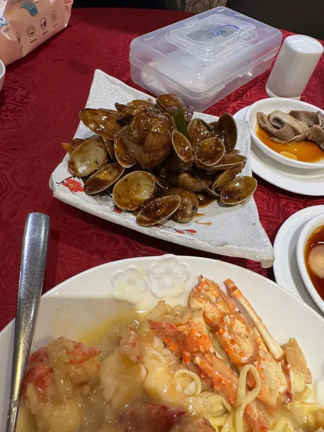今日終於試咗期待已久嘅海鮮大餐,果然無令人失望!整體來說,食材新鮮度滿分,簡單烹調已經帶出最原始嘅鮮甜,絕對係高質之選~聖子✨肉質飽滿彈牙,咬落去爽口得嚟帶點韌勁,蒜蓉蒸嘅做法更加凸顯咗佢嘅鮮味,汁都撈埋!蜆🦪一上枱就聞到濃濃嘅海水香,蜆肉肥美無沙,用酒香炒過之後更加惹味,一口一隻停唔到口~龍蝦🦞重點推薦!龍蝦肉厚實又鮮甜,焗得剛剛好,鉗子輕輕一掰就開,露出完整嘅蝦肉,蘸上少少牛油蒜汁… 天堂啊!其他小菜同樣有驚喜,無論係清炒蔬菜定特色小食,火候同調味都恰到好處,為成餐飯畫上完美句號。總結:鍾意食海鮮嘅朋友絕對要試,價錢合理之餘品質有保證,已經約定朋友下次再encore!查看更多