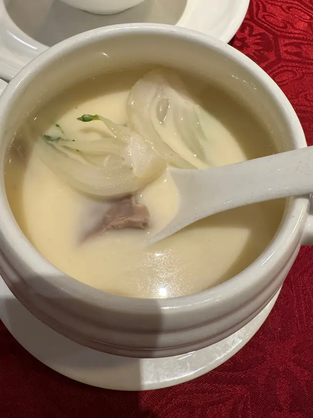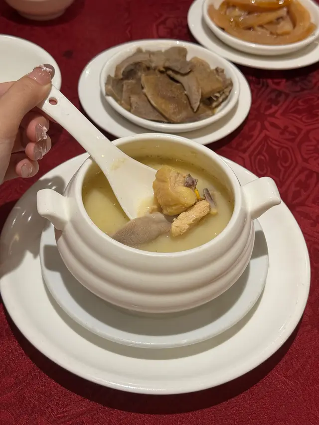 這家餐廳環境潔淨雅致,紅色桌布搭配精緻餐具,用餐體驗舒適。豉椒炒蜆醬香濃郁,蜆肉鮮嫩入味;金沙蝦球外酥裏嫩,鹹蛋黃香氣撲鼻,搭配翠綠西蘭花很加分;蒜香鮑魚鮮香彈牙,調味恰到好處;胡椒豬肚雞湯濃郁醇厚,豬肚爽脆、雞肉入味,整體菜式味道都很不錯,值得一試。查看更多
