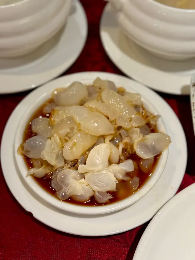 朋友話帶我食海鮮!食我最愛的瀨尿蝦!所以叫一個【至尊瀨尿蝦二人套餐】‼️咩都試少少!滿足我的小鳥胃😋📌前菜白灼海蜇及白灼魷魚均用豉油加點麻油調味可以釋出它們的鮮味👍🏻📌湯品▪️杏汁菜膽白肺湯融合了杏仁的清香、豬肺的鮮甜,以及菜乾的甘甜,口感細膩,帶有溫潤的滋補感。▪️胡椒豬肚雞湯胡椒的香味很暖胃👍🏻湯頭濃郁、很滋補養顏!📌椒鹽瀨尿蝦職員新鮮撈起後立刻拎去廚房烹調🤤職員細心為我們剪開瀨尿蝦的殼,肉質鮮甜啖啖肉!配上椒鹽的做法味道很惹味🤤📌蒜茸粉絲蒸元貝大大隻的元貝相當厚肉!而粉絲是主角吸收了醬汁的精華吃超好味🤤📌豉汁蒸大連鮑大大隻的鮑魚口感很彈牙,配上豉汁食別有一番風味。📌豉汁炒靚蜆蜆肉飽滿,豉汁很有港式風味很地道👍🏻📌翡翠金沙蝦球這款相當好味!鹹蛋黃醬包裹着整個蝦球!味道相當濃郁,炸皮又薄而蝦球很大塊👍🏻…查看更多