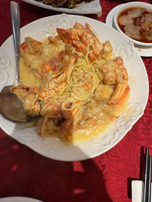 同家人約到海鮮飯店食早秋晚飯,環境舒服,價錢合理。贈送嘅豉汁炒蜆幾好,蜆肉肉鲜甜無沙,豉汁味道剛好。陳村粉炒蟹幾有特色,蟹肉鮮美,陳村粉吸晒蟹汁精華。芝士龍蝦伊麵正常發揮,龍蝦肉質結實,芝士汁唔會太膩。清蒸虎杉斑火候控制得不错,魚肉嫩滑。魚肚紅燒豆腐普通左啲,但豆腐夠滑。蔥油雞幾香,雞肉算嫩。蒜蓉炒菜心爽脆新鮮。杏汁白肺湯幾潤,飲完成個人都舒服。整體來講係一頓不錯的家庭晚餐,食物質素穩定,適合一家人聚餐。查看更多