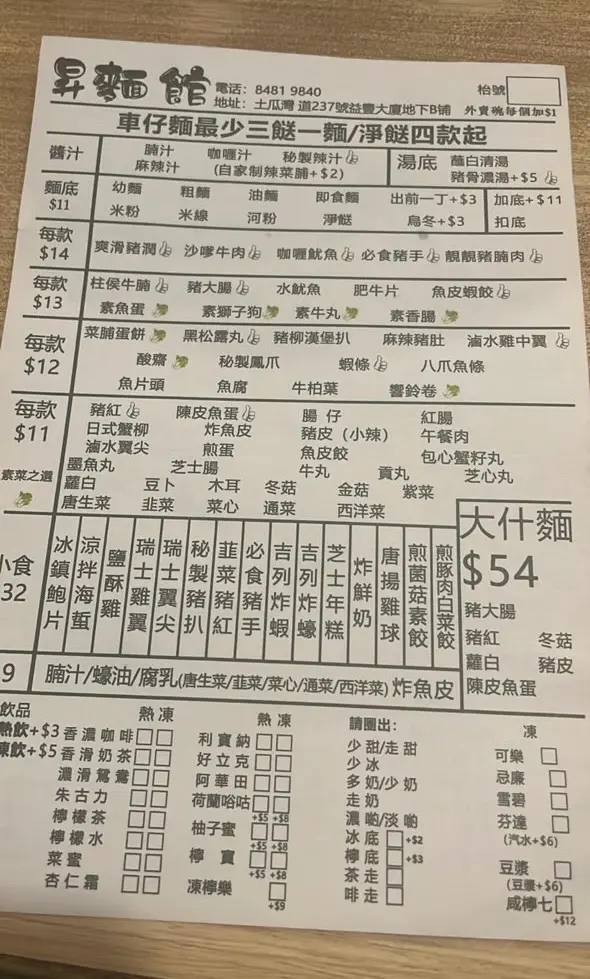 係因為睇左車仔麵群入尼既我今日經過入去試下味~四餸車仔麵表現dou ok ~~ 仲要唔貴抵食,唔似有啲車仔麵店成六七十食個四餸車仔麵😅😅今日都用餐體驗係唔錯,今日個麵湯底口道中規中矩,唔係好重口味,個人覺得加埋啲腩汁就係啱啱好☺️啲餸都無乜問題,要deliver既都deliver到,無話一樣唔好食,不過我覺得個牛腩係值得講下,$13都有幾多舊,有四五件,原本係諗住得一兩件,點知有四五件,當賺左!有bonus分加🤣🤣魷魚爽口,豬紅ok,牛腩正,豬腸都可以。overall 我覺得呢個價錢五十頭有埋杯凍檸茶唔知輸咩。住附近既都應該間唔中去隊一碗。抵👍查看更多
