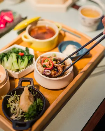 今次嚟系食午市套餐,每位💰$88都几特别系一个点心套餐,有汤、有饭、有菜、有点心🤗🥢荷叶剁椒牛肉饭🔅萝卜丝酥🔅火焰黑椒牛肉生煎包🔅白菜🥬🔅人参汤🥢荷叶滋补黄鳝饭🔅彩虹虾饺🔅黑金流沙包🔅白菜🥬🔅人参汤成个餐好丰富,够晒饱环境坐得好舒服饮嘅茶亦都好多款式喺尖沙咀开餐嘅朋友可以试吓🤗…查看更多