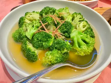 间酒楼喺阳明山庄入面,系一个台湾人老板在香港半山开设的大型屋苑入面会所的一间餐厅。呢间餐似系该超级隐形富豪的食堂,而开业到而家都从来未大装修过,门口有一个大明年间的漆鼎陪伴左呢间酒楼30多年。坐入面可以睇到出面的花园和水池,而且景观十分开阳。餐厅走廊的水墨画就不敢恭维呢间酒楼的脆皮鸡系招牌菜,虽然食得出系冰鲜鸡,但都可以做到皮香肉脆啲叉烧系好好食,因为啲汁比较甜,令到旧叉烧好特别食唔停口。尤其是㶶了嘅部份系好香口,咬落去脆脆地,明知唔健康但因为太好食所以都会照食。之后叫咗一条石斑职员即场攞条鱼出嚟核实佢嘅新鲜程度。鱼头就放落瓦煲炆,我鱼身用嚟炒球。两种食法完全唔同各有风味。钟意啖啖肉就当然食炒球,如果想食一啲有特别质感的鱼头就会可以捞埋葱一齐食。炒球就唔系好多集,啲汁都系嚟自条鱼本身,但呢一种煮法同啲白饭唔系好夹,反而啲西兰花同呢啲鱼汁捞埋一齐食会辟咗西兰花啲青味蒜蓉虾系上品之作,啲酱汁虽然有甜、咸、酸三味,但配合得天衣无缝。因为只虾炒得比较有镬气,啲汁有少少凝固在壳上,令到你啲学到好入味,其实咬碎啲壳都可以食。虾肉系弹牙爽口,同呢啲汁捞埋一齐食系一流,如果捞饭就更好,最可惜系啲虾竟然有虾肠最后食一味鱼球炆烧肉。因为烧肉本身有咸味,而条鱼味道系比较淡,所以烧肉味不会盖过条鱼本身的鲜味。略嫌啲姜切得太大旧,够姜入面仲未熟晒,姜汁仍然好辣食完饭可以去酒楼楼下的展览室参观一些古董和后现代艺术品,但近年这个台湾老板将好多价值连城,原本在展览室的战国铜器及唐宋文物收埋,换成好多毫无艺术价值的的螨蜻蝈文物,品味退步了不少相熟𠮶啲职员都走得七七八八唔知新的职员会唔会保持返水准?