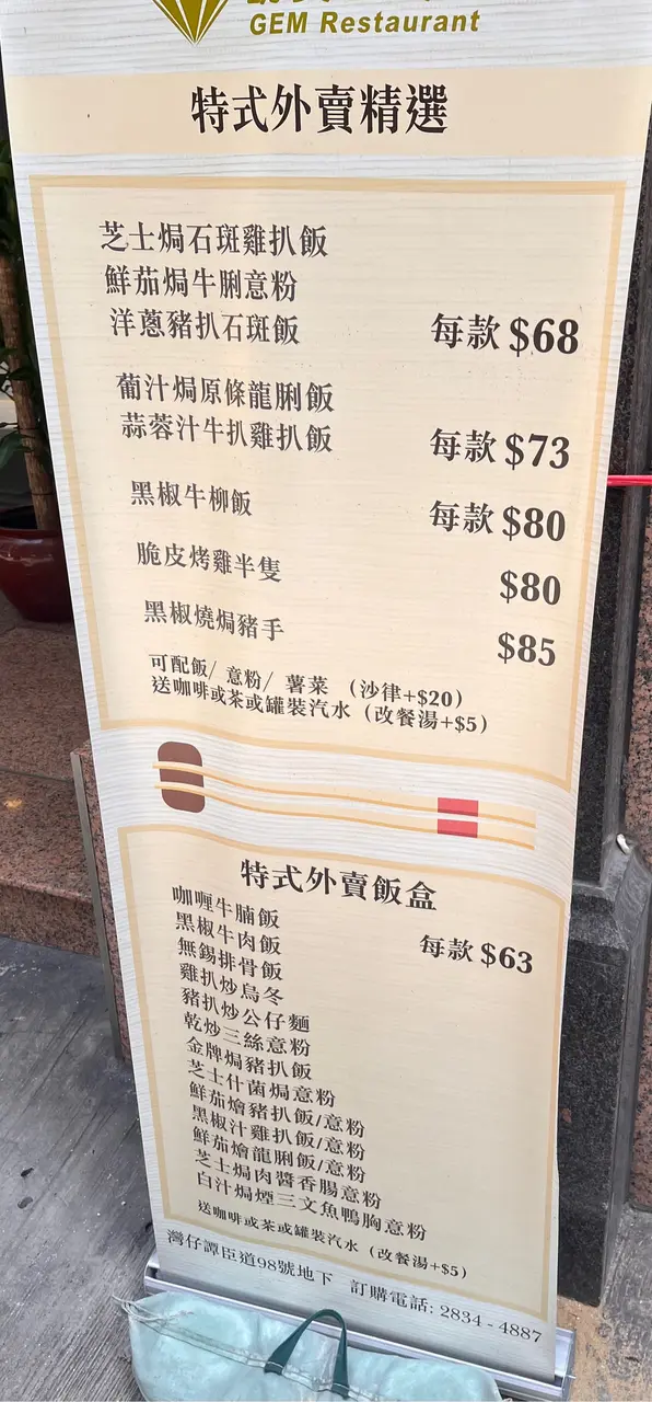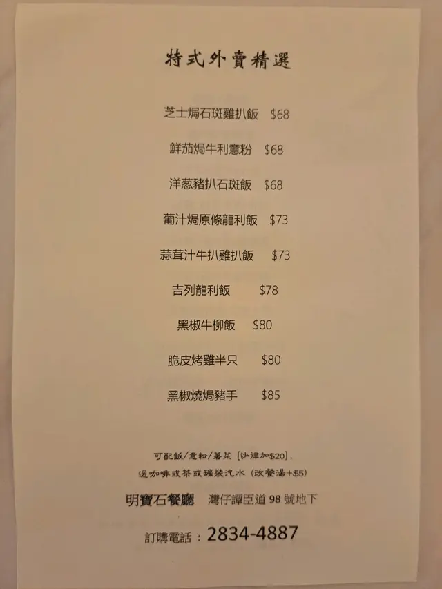 明寶石餐廳 (湾仔) 网址: https://s.openrice.com/QrLS0dPG000 地址: 香港灣仔譚臣道98號運盛大廈地下B號舖 电话: +852 28344887