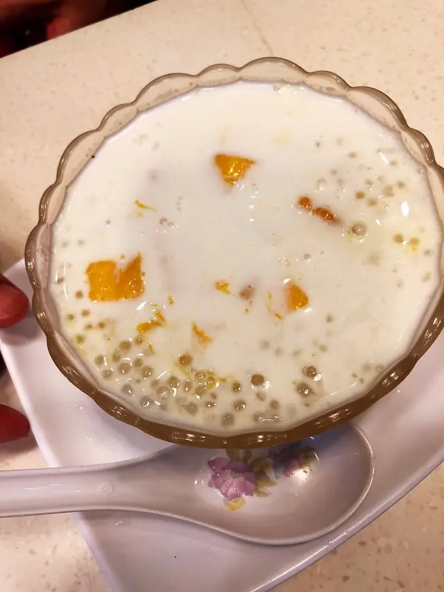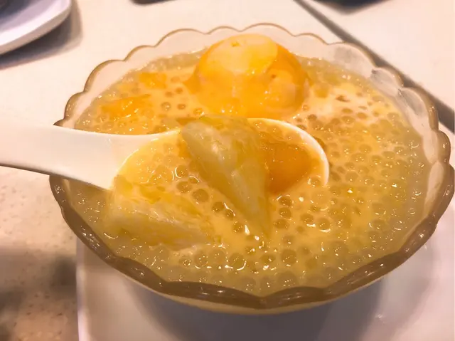 30蚊一碗完全系垃圾中既垃圾-----黃色的冇味西米糊成碗粥甘樣 , 裡面全部系西米 , 西米煮出黎既水加椰奶加少少芒果汁變左淡黃色就當系楊支甘露...............食左兩啖就走人真系好嬲 , 西柚肉得5條........真系得5條...芒果用晒唔新鮮既熟到爛芒果有5小塊然後成碗粥咁既質地 , 全碗系西米.....完全冇芒果味....正常既楊枝甘露應該芒果汁打碎加入淡奶度,分量要一比一先夠味又夠稀呢間野...西米仲多過所有材料.....10分奶1分芒果..........好得人驚查看更多