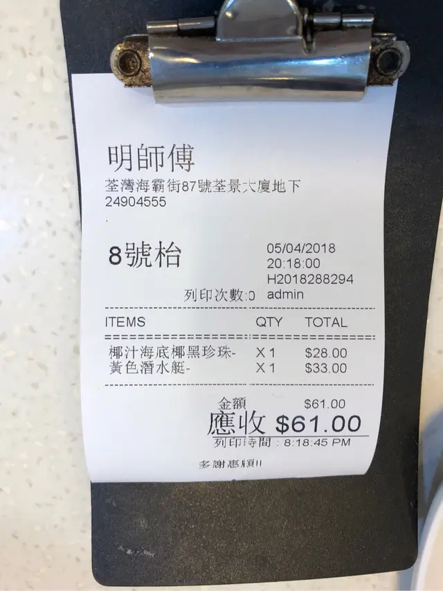 同朋友係荃灣食完飯,諗住食返個甜品作為今天完美既結局,點知.........有點點後悔黎左呢間明師傅,點解唔去隔離果間X記.....首先入到去環境係光鮮既,但張餐牌黎到就覺得好殘都算,仲痴笠笠,呢啲第一印象真係好影響跟住落黎既食慾,叫左個椰汁海底椰黑珍珠,一個非常普通既糖水,諗住實無死啦,但竟然令我更失望,啲海底椰淋既多,又過甜,好似浸左濃糖水咁,爽實既感覺呢?呢樣都算,點解啲海底椰係有酸味架....我未試過海底椰係酸架....呢碗野都成$28🤢 仲見到個碗啲罅位有積架...真係成個唔開胃...朋友食既黃色潛水艇都話好麻麻.....無下次...查看更多