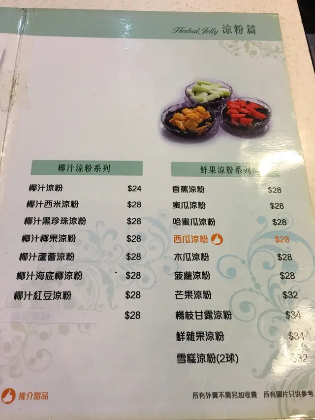 本來見到這家甜品店門口沒人等位朋友說不要進來這一家店的但是在隔壁等位期間,開始下起大雨來這條街又不是特別闊落所以我們還是進來了.....本來打算叫椰子類甜品,應該是穩穩陣陣的至少在其他區的甜品店吃椰子類的都不錯於是便和朋友一起點了涼爽可我們錯了!涼爽,是椰皇內有西米﹑涼粉和雪糕另有一小樽椰皇水雪糕是自選味道,我選了抹茶味,友人則選了曲奇味西米和涼粉可說是本身已沒味道椰皇水很清,但也未能為西米和涼粉帶出味道雪糕很冰凍,直至雪糕溶化,混合了椰皇水這個甜品才有味道~雪糕也只是一般的貨色,抹茶味不夠濃和朋友都認為這款甜品不好吃!而且這裡的座位都編排得很窄坐得不舒適!查看更多