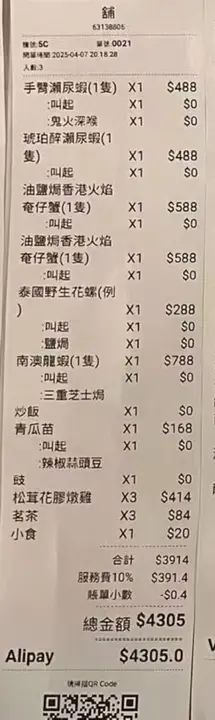 本来想去铜锣湾那家,看攻略说铜锣湾那家要排队所以还是来了旺角,出乎意料体验感还不错。环境确实比较大排档一点,但是比预想中的好。去店里的时候有路过看到濑尿虾大闸蟹之类的在缸里养着,给人第一印象就很好。口味很均衡了,用一饭封神里的话说叫balance 哈哈哈哈。推荐鬼火深喉濑尿虾,去的时候刚好遇到老板,老板介绍说他家这道菜是鬼火深喉做法的,比传统的避风塘做法更好吃,而且辣椒产自台湾的,配菜和虾一起吃口感非常nice,蛮辣的。