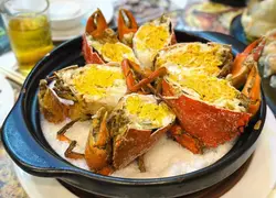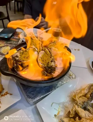 味道很好的一家主打海鲜的店,菜单的选择非常多,在纠结点什么菜的时候,服务员也会过来帮忙推荐。 盐焗奄仔蟹:这个螃蟹很酷,菜端到桌上以后在桌上点火。蟹膏很香,分量也很大。皮皮虾的膏也非常的足,肉也很丰富。