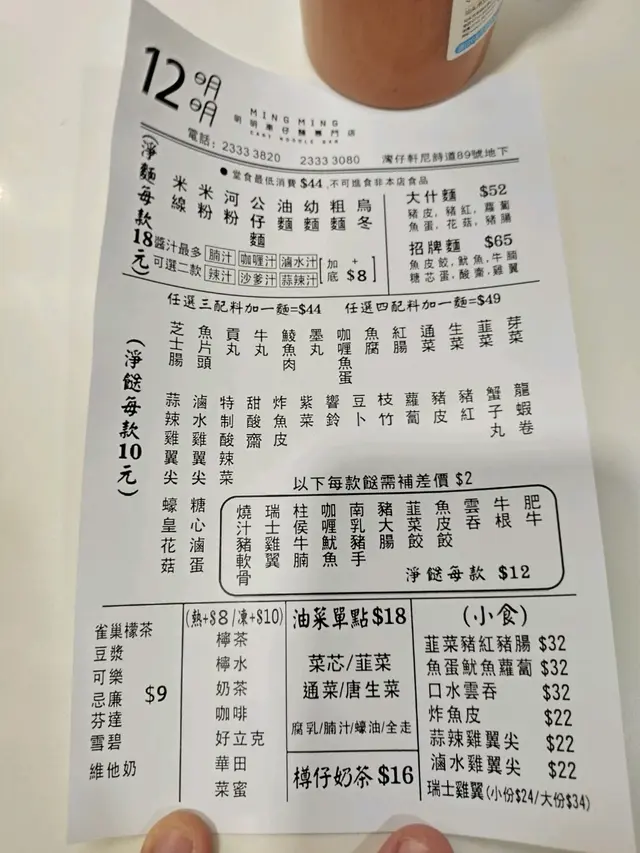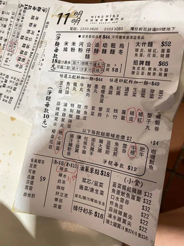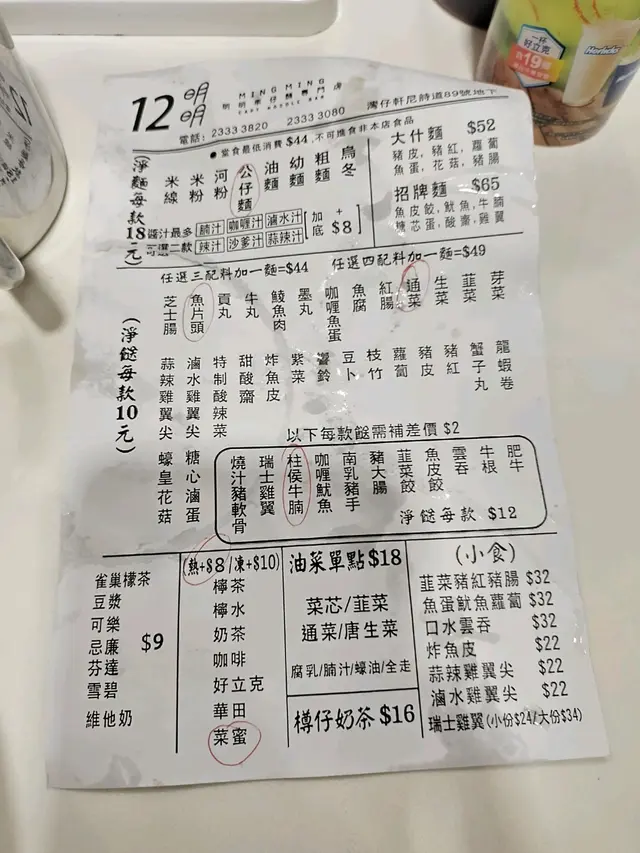 明明車仔麵專門店 (軒尼斯道) (湾仔) 网址: https://s.openrice.com/QrLS0TZm900 地址: 香港灣仔軒尼斯道89號地舖 电话: +852 23333080