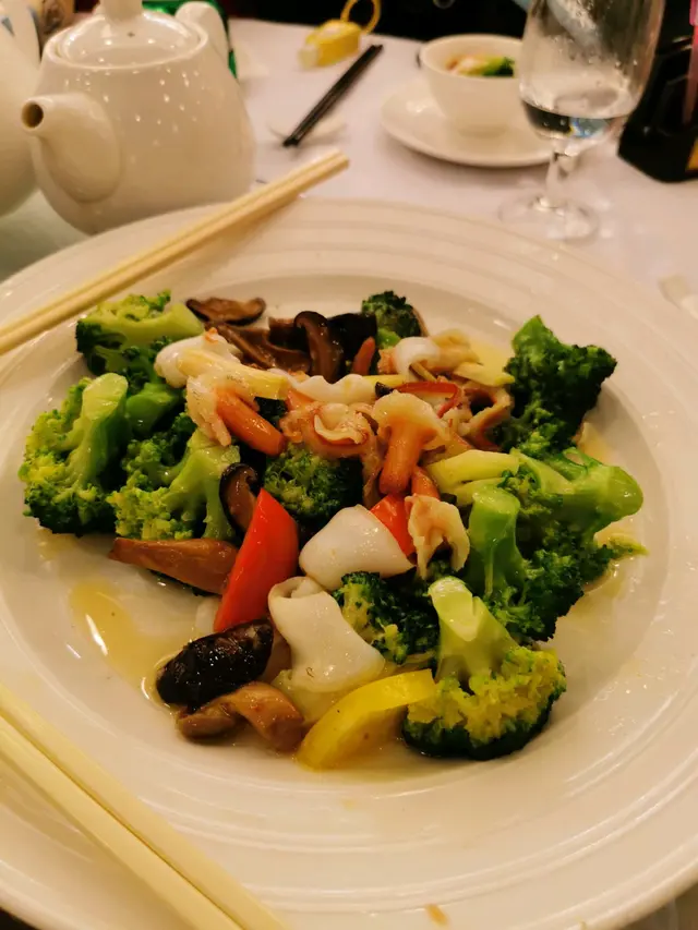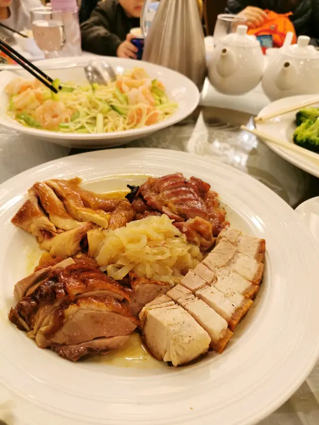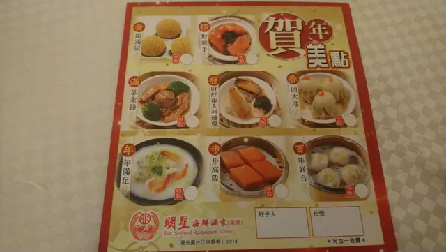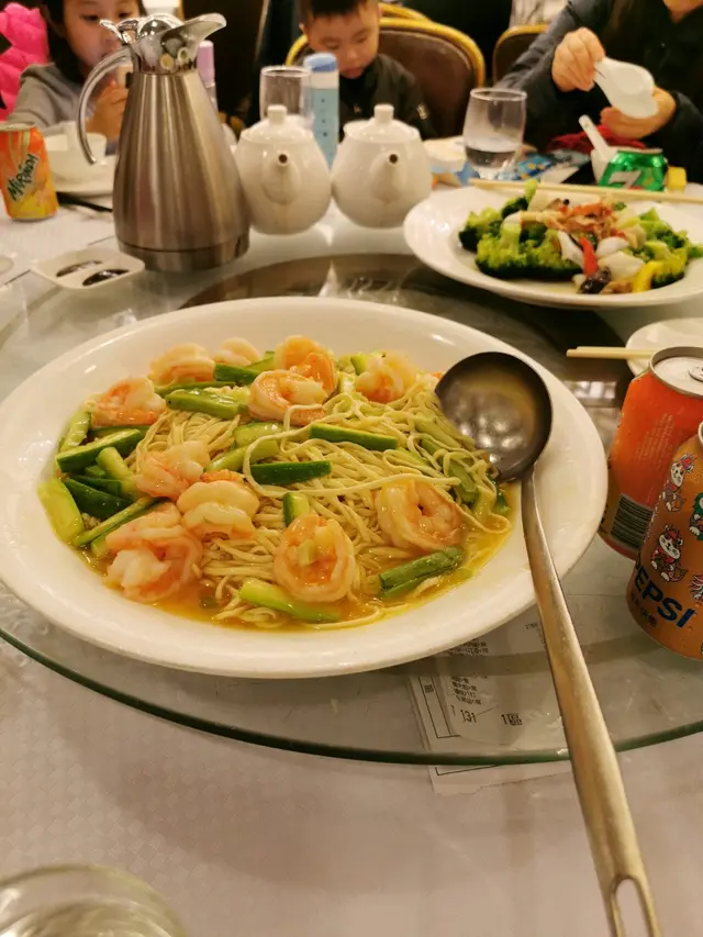 適逢年三十晚,同親戚去左北角明星酒家食團年飯,一早落訂預定了<海班宴>套餐💲2788🥢燒味拼盤唔錯,估唔到豉油雞係俾雞髀位😍🥢上湯焗蝦球伊麵 有好多蝦球,蝦球肉質咬落去爽口有彈性,蝦球同伊麵嘅比例剛剛好。🥢西蘭花蚌片花枝 既花枝同蚌片都幾爽口,不過份量較少🥢沙律海鮮卷唔洗再點沙律醬都夠味🥢花膠海皇翅,稀左少少,材料少🥢發財好市大利,蠔豉好難食🤢🥢清蒸大沙巴魚質嫩滑,蒸既火候啱啱好🥢燒雞個皮好脆,上色都做得好靚,隻雞唔算好肥📌廁所衛生情況唔錯,經過咗成晚咁多人流,都仍然保持得幾乾淨👍🏼📌冇咩服務態度可言,因為太多顧客嘅關係,樓面嘅同事都照顧唔到咁多查看更多