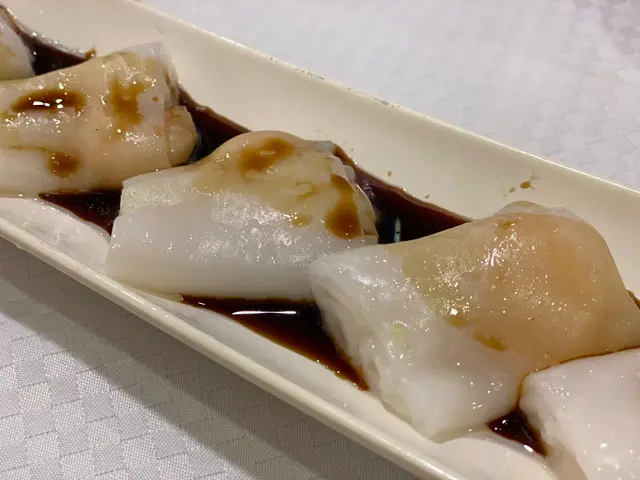 。鮮蝦蒸腸粉:嘩!腸粉滑到不得了,一放入口,超有驚喜,點解可以做到咁軟滑?雖然份量比較細,得六件,而啲蝦又細細粒、唔太新鮮、唔爽口亦唔彈牙,但都食到我同同事讚口不絕!下次會就咁叫齋腸