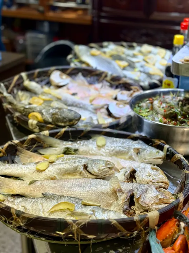 最近經常落雨, 難得這日好天, 就出去荃灣影日落, 影完日落就到這裏食潮州菜海味粉絲雜菜煲🥘 $128材料豐富, 有我最愛吃的蝦乾, 大大隻的蝦乾鹹香濃郁, 是整鍋的靈魂, 滲透湯底.菇菌與雲耳, 提供了多重口感, 充滿鮮味.粉絲吸收了所有食材的精華, 入口滑溜, 還有多種蔬菜, 既健康又滿足的煲仔菜啫啫滑雞煲🍗 雞肉嫩滑雞件, 經高溫爆炒後仍保持肉質鮮嫩, 香氣撲鼻, 口感濃郁配料有紫洋蔥、青椒、紅椒等, 提升了香氣及口感方魚肉碎粥🥣方魚鹹香突出, 肉碎細嫩入味, 與方魚形成鮮鹹交錯的層次, 粥底米香濃郁, 吃得很滋味滷水雜錦拼盤🐷 滿$300 只需加$8份量很大, 有最少六種滷水, 豬耳外層彈牙, 內裡軟淋, 有滿滿的膠質感紅腸口感紮實五花腩肥瘦相間, 入口即化鵝腸軟嫩滑口墨魚彈牙鮮味鵝腎細嫩有嚼勁原來這是菜館邁向18週年優惠, 非常抵吃呢!話明是海鮮潮州菜館, 除了打冷滷味, 還有多款生猛海鮮選擇, 可是這次兩人很難吃到海鮮, 下次與三五知己聚腳或家庭朋友聚會, 一定再來吃, 又可以暢飲一番. 這裡營業至零晨, 也是宵夜好選擇…查看更多