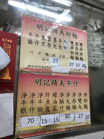 明记系我同男朋友每次想食牛腩面嘅唯一选择,因为佢真系我嘅食过最足料价钱又合理又地道嘅粉面舖🥰今次我哋食嘅系牛腩馄饨米同牛杂河粉🍜牛腩腍滑肥美;馄饨皮薄足馅,里面嘅虾鲜甜弹牙。河粉滑,牛杂炆到索晒啲腩汁,好入味,完全唔会有嚼唔烂嘅情况。尤其值得一赞嘅系佢哋嘅腩汁汤底,味道刚刚好,唔会过咸。😋餐厅营业时间至凌晨,所以如果夜晚有人肚饿,呢度绝对系食宵夜嘅好选择!总括嚟讲,明记面家绝对值得一试,份量足,价钱又公道。如果你都喺慈云山附近,不妨去试下!