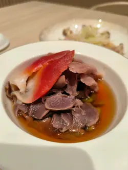 午餐和朋友試兩款蟹主題一人餐,竟在方寸食碟間品出江南食肆的細膩功夫,足見店家對“小而美”的執著。經典款套餐以蟹粉為魂,開場的山珍湯清潤不寡,竹蓀與菌菇的鮮氣先喚醒味蕾,恰是鋪墊的妙筆。蟹粉小籠包單粒呈上,皮薄如紙卻能兜住滿膛湯汁,咬開時得先吮汁再食肉,蟹粉的腴香混著肉糜的油潤,鮮得很有層次;禿黃油糯米燒賣更見功力,糯米吸足禿黃油的濃醇,每粒米都裹著金黃油花,一口下去脂香滿溢卻不膩喉。最驚喜是至尊蟹粉撈面換手工拉麵,麵條筋道彈牙,拌上足量蟹粉與蟹油,拌勻後每根面都掛著粉黃蟹香,嗦面時滿是鮮甜,收尾的寧波芝麻湯丸軟糯流心,黑芝麻餡的綿密剛好平衡蟹的濃鮮,堪稱點睛。健康套餐則另辟蹊徑,把蟹的鮮美與清爽結合得恰到好處。水晶蟹肉凍是驚喜,透明凍體里嵌著粒粒蟹肉,入口冰涼Q彈,蟹鮮清淡卻持久;手剝蟹腿肉配蘆筍更是妙,蟹腿肉緊實鮮甜,蘆筍脆嫩帶微甘,兩者同食既有海鮮的鮮,又有蔬菜的爽,毫無負擔。萊茵衣藻面青綠討喜,口感軟滑帶淡淡植物清香,搭配無糖姜茶的溫辣,吃完渾身舒暢,連“健康”二字都變得適口起來。兩款套餐各有側重,卻都藏著“不將就”的食心。無需大宴賓客,一客午膳便得蟹鮮真味,於細微處見真章,讓尋常午間也成了舌尖上的小確幸。查看更多