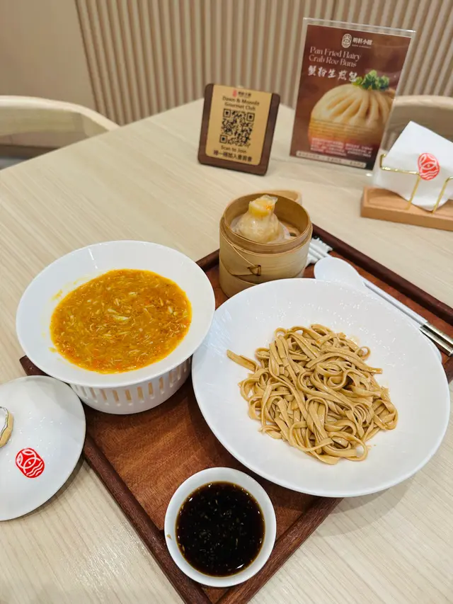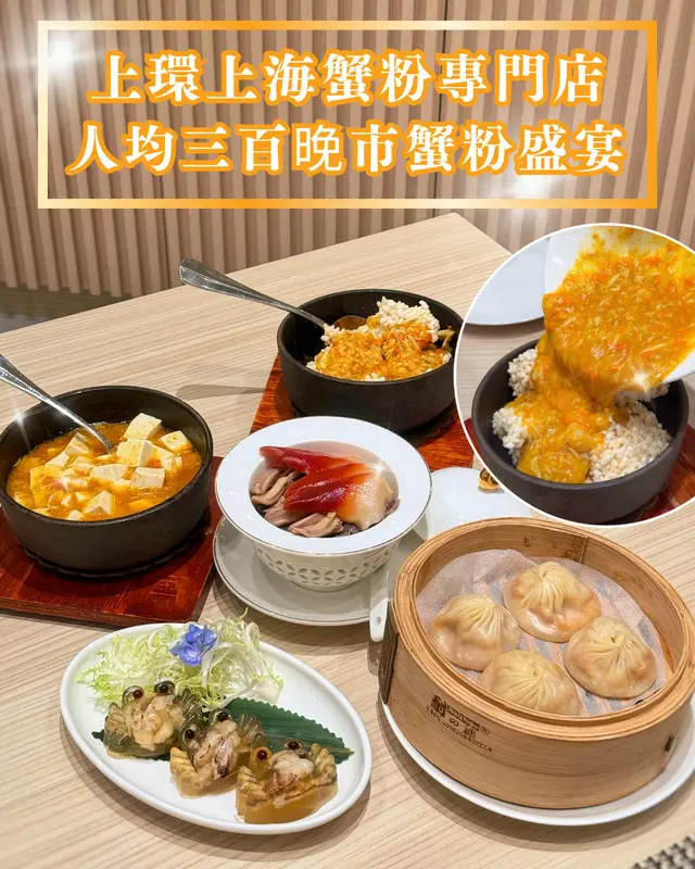 🦀咁正嘅蟹粉小籠包竟然冇人講?! 最近去咗位於上環呢間蟹粉上海菜館 - 明軒小館,主打大閘蟹同蟹粉菜式,餐廳空間闊落舒適~我地點咗➡️”清酒墨魚仔",墨魚仔爽口彈牙,浸住清酒香慢慢滲出嚟又唔會搶味,凍食開胃一流!👍🏻➡️”水晶蟹肉凍",個造型好得意,透明小蟹仔形狀,包住絲絲大閘蟹蟹肉嘅水晶肉凍,眼睛用蟹醋製成,好有創意,咬落去醋汁爆出黎,酸酸甜甜好開胃,不過如果蟹肉多d就更好!➡️”蟹粉小籠包"係全場MVP! 皮薄湯多,夾起嚟搖下睇到湯汁盪漾,透光唔穿底! 一啖咬落去蟹粉湯汁湧出嚟,建議咬細孔啜啖湯先,蟹粉同豬肉比例啱啱好,好鮮甜!雖然一籠只有四隻,但咁高質素絕對值得一試!黎到主食➡️”至尊蟹粉蝦仁鍋巴",係必食推薦!上檯時「咋咋聲」勁治癒~蟹粉多到瀉,仲有啲蟹膏撈埋,超級足料!熱辣辣鍋巴淋滿金黃蟹粉,仲有大大隻蝦仁,鍋巴脆卜卜夾住濃郁蟹粉汁,吸汁後仲keep到脆口!另外仲點咗➡️”蟹粉栥飯糕",我覺得比鍋巴又香口,外層炸得金香,入面飯粒軟糯,可以加入蟹粉食,黐住每粒飯,邪惡但停唔到口啊!最後仲點咗2款甜品,➡️"老上海法式焦糖燉蛋",外型用蛋殼造型好cute,面頭焦糖金黃香脆,燉蛋好滑,蛋香超濃,甜度啱啱好!➡️"薑汁鮮奶燉桃膠",食完濃味嘢食呢個最啱,薑汁微辣帶出奶香,桃膠滑嘟嘟養顏又解膩,食完成個喉嚨暖笠笠!🔸清酒墨魚仔 ($58)🔹水晶蟹肉凍 ($68)🔸蟹粉小籠包 ($88)🔹至尊蟹粉蝦仁鍋巴 ($188)🔸蟹粉栥飯糕 ($68)🔹老上海法式焦糖燉蛋 ($28)🔸薑汁鮮奶燉桃膠 ($48)🔴明軒小館 - 地址:上環皇后大道中287-299號地下1號舖 …查看更多
