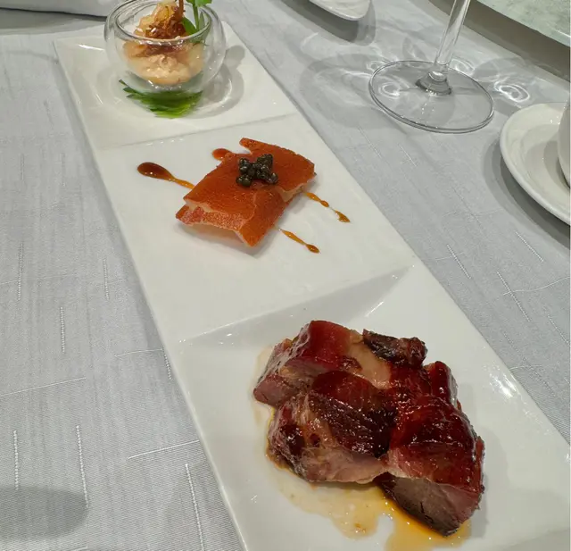 又係出色嘅一道菜見到佢瞓呢條魚嘅時 嘩好鬼大條啊淨係食一個背脊位都覺得好鬼滿足,雖然我唔鍾意出街食蒸魚係會淋蔥油 。因為好油膩。不過呢個個人喜好條魚火候都OK 炒飯嘅質素就普通啲啦,似係正常發揮,叉燒當然唔會用頭先嗰啲咁靚嘅叉燒🤣後面嘅炸子雞唔記得影 不過比想像中好🥰因為啲雞肉好嫩滑整體而言比5分滿分,環境一流 仲有服務都係完全一定五星級🥰🥰😘
