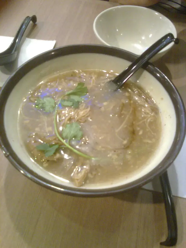 落油也不是太多嗎 油脂多得反光,對著重健康的人會否可以直接埋單走人?這個問題必須改善雞扒粒用蜜汁醃過 味道惹味 蔥花也配搭很好 餐牌推介中有一個名叫 X芋X (忘了)($28)中文名稱完全不能理解是什麼看看英文則是涼粉 紅豆 芋頭 加在一起見有趣來一客三種東西加在一起相當不錯 ,但略甜 下次會再來的 但務必在落單這個時要求少甜一點 另外在用餐時,水吧台的一個員工在電話中不停大罵“射波”下屬,用餐時聽得好清楚,清楚曬…查看更多