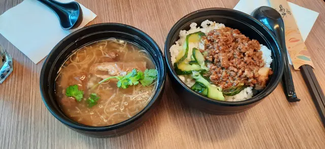 今日一直下著毛毛雨,所以同一個同事搵左間喺地鐵站附近嘅食店食lunch.大概12:40嚟到,仲有一半嘅空位。呢度環境都好乾淨企理同清靜。職員好快帶咗我哋坐低,俾Menu我哋睇。原來午市套餐好抵食。我叫咗一個$50嘅午市套餐,包括魯肉飯,大腸麵線同埋珍珠奶茶。我同事都係叫咗一個$50嘅午市套餐,包括魯肉貢丸滷雞蛋乾麵同台式奶茶。同事話個乾麵都幾多,味道正常。而我嗰個魯肉飯就夠濃味,最啱用嚟送飯。至於大腸麵線就比較普通。我同埋我同事都覺得個奶茶比較稀咗少少。但係,如果以$50呢個價錢嚟講,其實真係好抵食。查看更多