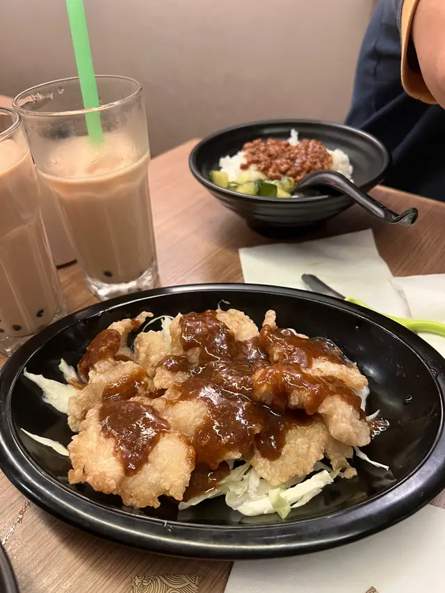 🐷魯肉飯配大腸麵線($50)魯肉肥瘦適中,醬汁調味啱啱好又唔會太油,好啱送飯,配菜既醃青瓜酸酸地既開胃又幾好食添。大腸麵線既蒜味幾重,雖然質感偏稀但我自己就覺得啱啱好,不過大腸只有2大舊,如果可以比多1~2舊就更好🙏🏻🧄黑椒香腸(星期5限定特價$12)當時做緊每日唔同款既特價,見到星期5係黑椒香腸就即刻叫左😍估唔到有跟我最愛既生蒜片,辣辣地好好味👍🏻🧋珍珠奶茶(BB少甜,跟餐免費)因為怕會太甜就叫左店員提議既BB少甜,果然真係啱啱好,只帶微甜。味道中規中矩,不過都幾多珍珠,飲完都好飽肚50蚊有飯有麵有野飲,仲要凍飲唔使加錢又無加一,環境又ok,係堂食嚟講應該係平絕成個銅鑼灣,所以每次去都座無虛席,如果想慳錢或者有糧尾既煩惱,呢度真係一個好選擇👍🏻查看更多