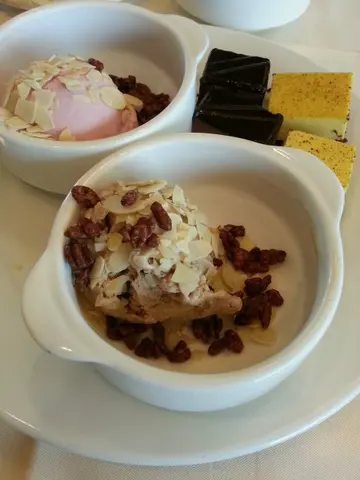 父亲节个日我同呀妹谂住请成家人食返餐自助餐,点知唔嗲唔吊之下,好多酒店buffet都full哂… 无意中发现珀丽有个lunch buffet, 一于胆粗粗试下啦!Lee个lunch buffet系半自助形式,有一set主菜,再加一d自助既野食,本身以为实冇乜选择,但估唔到都几多野食,仲几好质素添!!主菜有几个选择比你拣,我就拣左鱼柳,虽然份量唔大,但味道几好,香脆得黎又唔油腻!而且个汁配搭得好好!食完仲未够喉,好彩仲有d自助野食!自助既lunch buffet有饭、𩠌、甜品、寿司、刺身、沙律、汤等等,都几多选择ga!d三文鱼刺身劲肥美,又鲜甜!!d海螺同虾都好鲜味,一d都唔腥!!令我意外既系竟然有芝麻糊,哈哈,大大一盘任食,第一次系buffet见到有芝麻糊,都几正ga!!野饮选择就唔算好多,正正常常既橙汁、苹果汁、咖啡、荼个d都有!题外话,去厕所时见到个窗系落地玻璃,景观虽然系楼景,但都几开扬ga,环境干净舒服! 总括而言,Lee餐lunch buffet绝对值回票价啦!!