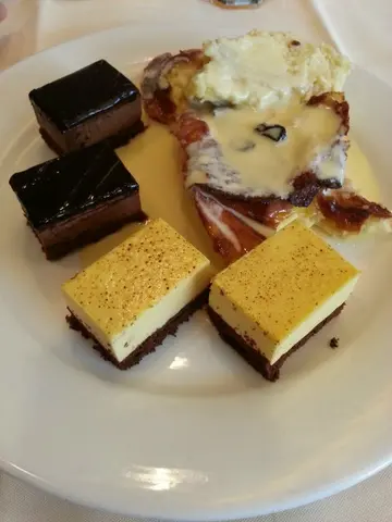 炒饭, 千层面, 菜, 鱼柳, 炒蚬, 炸春卷, 薄饼等等. 炒蚬都是细细仔的质素, 用了蒜容炒, 很香口, 只有少少沙, 所以我吃了两打. 鱼柳是连皮煎香了, 鱼皮煎得很香脆, 里面的鱼肉也很滑. 千层面的芝士味很重, 也太咸了, 所以我只吃了丁点. 甜品方面, 这里的选择也不多, 也refill 得很慢. 鲜果有哈蜜瓜, 西瓜等等, 不过不太多汁, 有点干. 绿茶蛋糕的cream很多, 但绿茶味不算浓厚. 芒果慕士朱古力蛋糕的芒果慕士很甜, 不似芒果的味道. 黑色的林明顿蛋糕也过份甜了. 焦糖炖蛋的蛋很滑, 但过份的甜到溜了. 朱古力慕士蛋糕的质地很滑溜, 朱古力味道也够浓厚. 香草布甸是滑滑的, 也有奶香味, 不过也很甜.这里的雪糕是