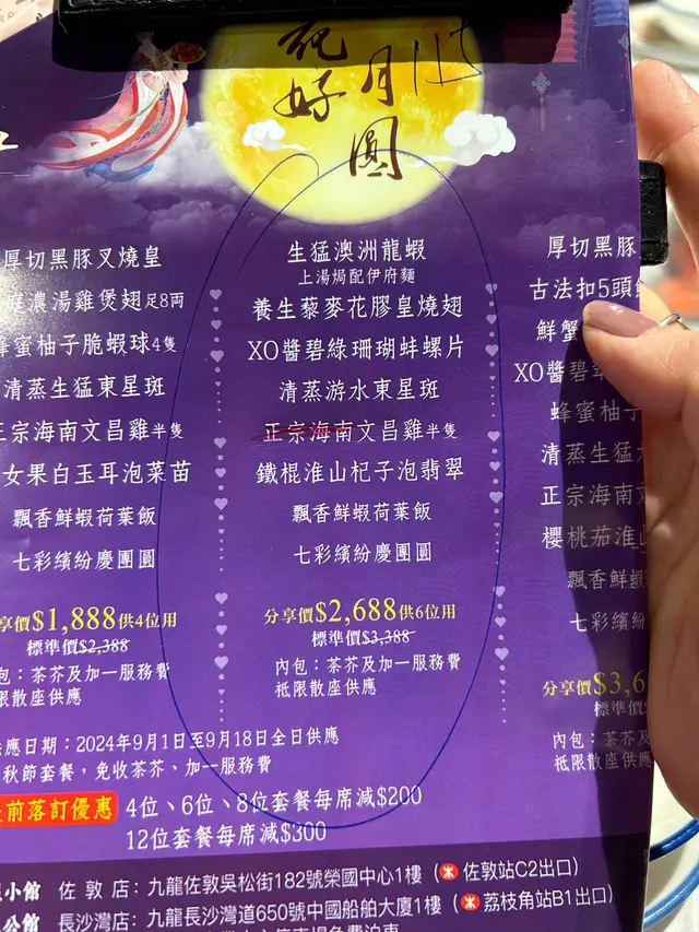 近日才发现呢间位于佐敦的小店,朋友食过奄仔蟹套餐之后推荐,折后每位$488,若然货真价实,算抵食,真要找机会试吓。适逢旧同学聚会,重倾偈都多于食蟹,决定先去尝尝散点,果然价相宜,整体质素唔错。菜式不乏新意,例如牛油果百花酿雪茄及莲藕尖;价钱公道,例牌菜式多半百多元,精致菜式二百几,例如雪花牛肋排 $268,整只文昌鸡都只是 $298 ;海鲜有价,最重要质素,留待下回分解!江南家常四喜烤夫 $78酸道适中,水准可以。养生海带杞子莲藕尖 $78估唔到啲汁系辣嘅!莲藕尖爽口,作为小食不俗。燕麦椰香南瓜芋头煲 $138半汤形式,汤头奶白,椰香丰富都唔错,芋头煲至软身,好味。彩椒榄角脆活鳝球 $198脆脆地配合浓甜黏调的酱汁,符合预期。生姜马拉盏虾干芥菜 $148堂前倒进非常烫热的煲,富仪式感,虾干咸香十足。牛油果百花酿雪茄 $148/6有点创意,春卷的变奏,还很有心思的附上塑胶雪茄标志,外脆内软,非常热腾。私房百里香雪花牛肋排 $268松软入味,有水准。海南文昌鸡半只 $178鸡只不大,可以唔错,鸡胸肉亦不嚡。功夫冰烧三层肉 $148卖相讨好,一看就已经知道得,猪皮非常酥脆,肥瘦肉比例理想。彩椒榄角脆活鳝球一口金沙骨 $148带少少咸香的榄角配合腌味有少少甜的金沙骨,交替对比,非常滋味。蜂蜜柚子脆帝皇虾球(+2粒)$264足料原只虾,炸得酥脆不腻,柚子汁浓郁,正好替米通提味。巧手香糯酿鸡翼 (8只)$181做得唔错,糯米份量理想,调味恰当,略嫌有少少咸,价钱相宜。珍珠元贝樱花虾炒新竹米 $168几有镬气,炒得干身而米粉湿度足,珍珠元贝份量也不少。白饭 $15茶芥 $16*8CP值不俗,值得重访。